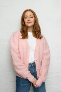 Second Female Brooky Knit Puff Cardigan – Silver Pink