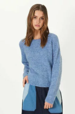 Second Female Brook Knit New Loose O-Neck – Blue Bonnet