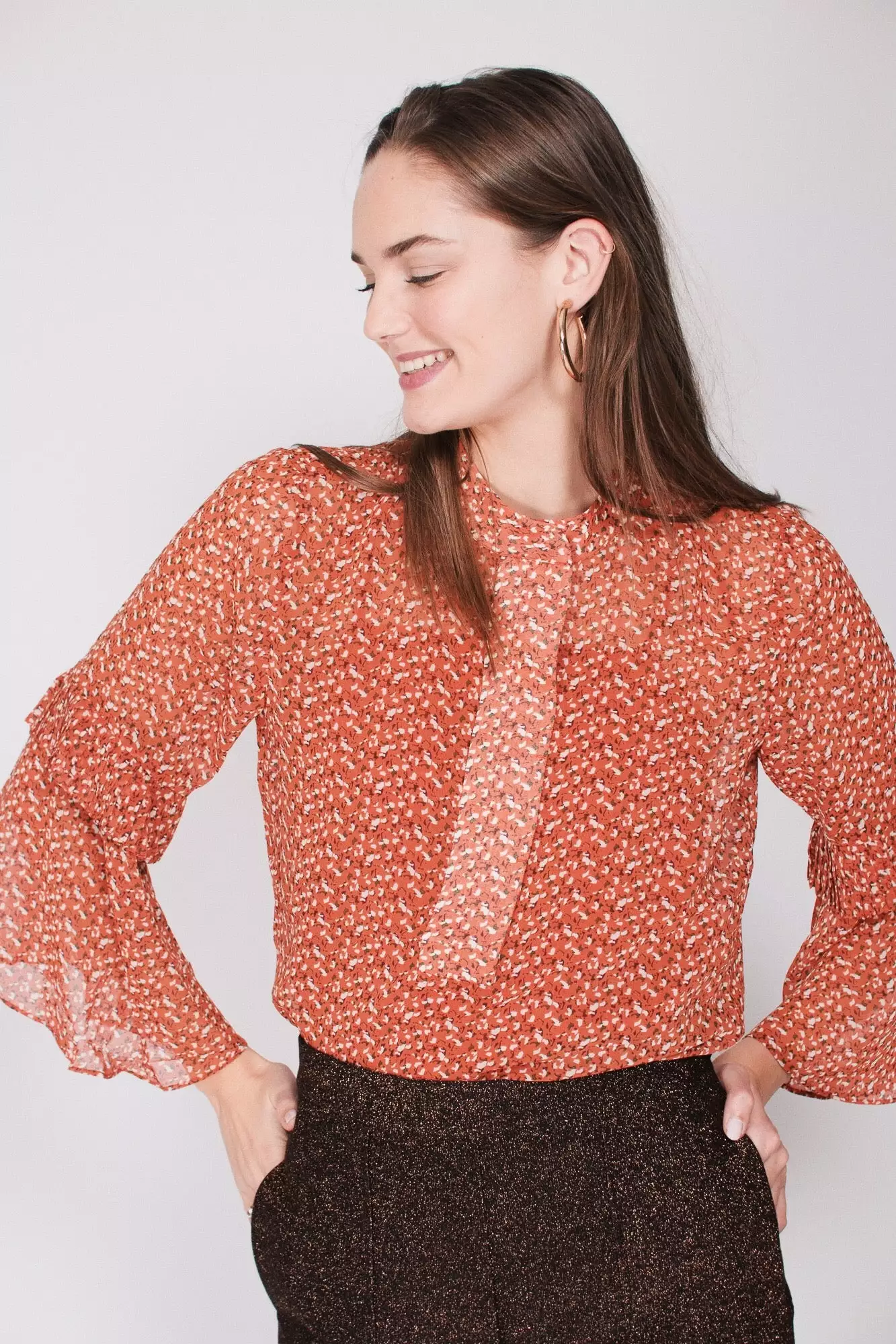 Allo shirt er en fin bluse fra Second female som passer perfekt til høsten. Høy hals og detaljer på ermene.