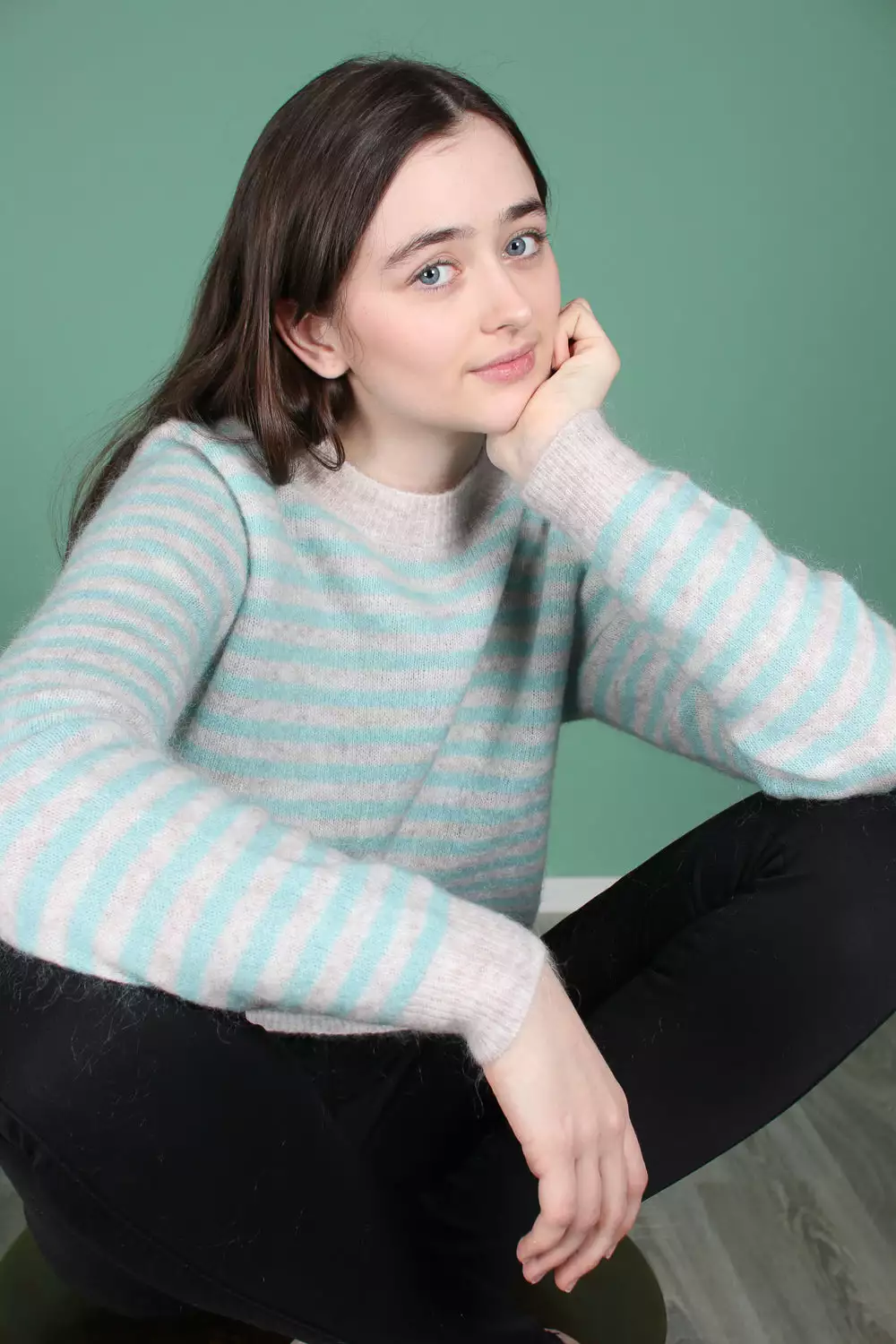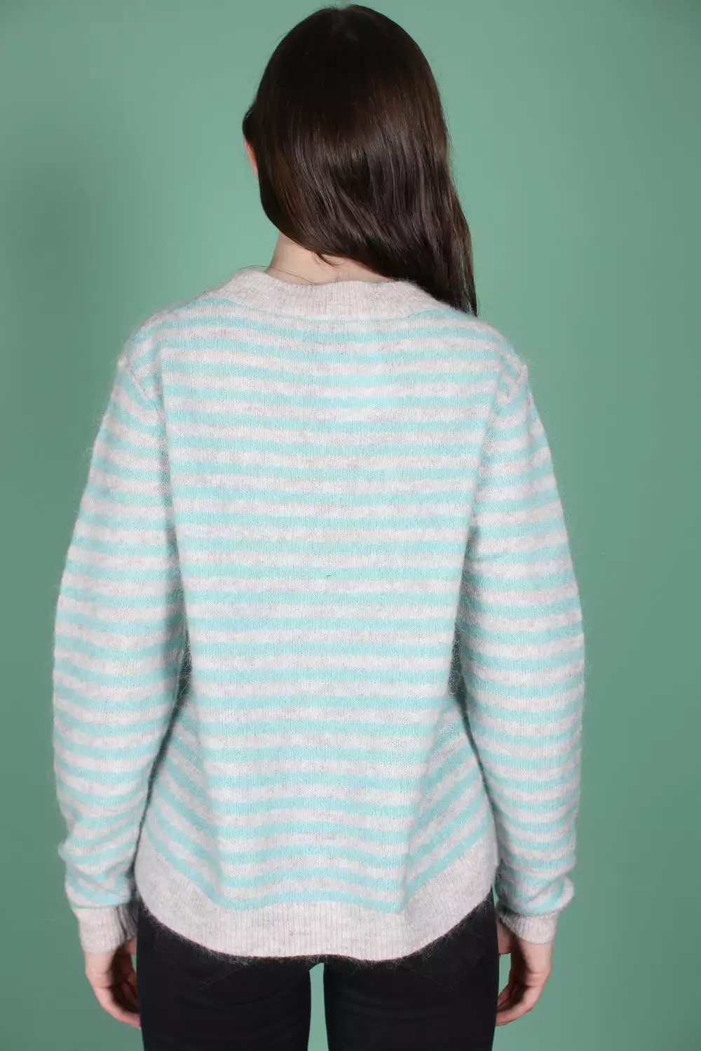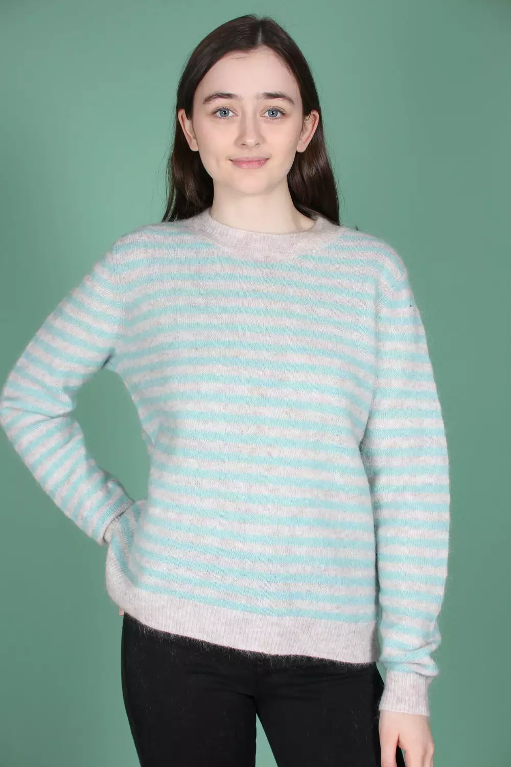Deilig genser med striper. Genseren har rund hals noe som gjør den behagelig å ha på seg.