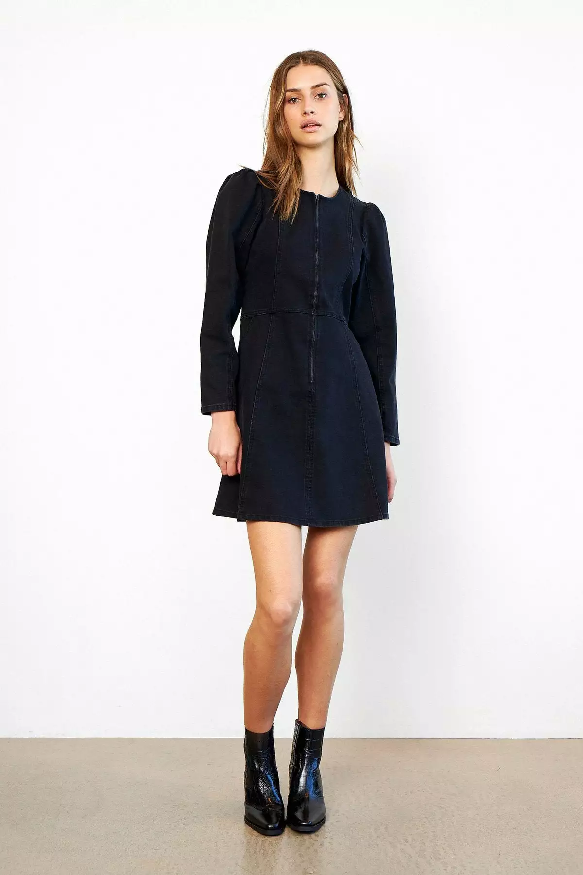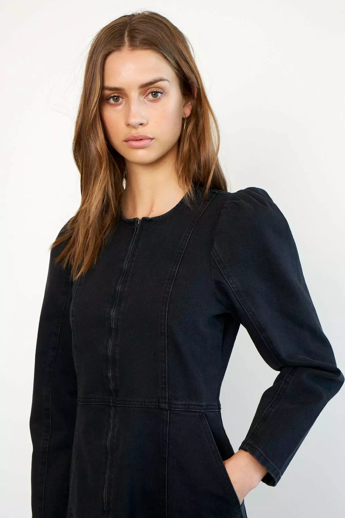 Anne Dress fra Second Female. Statement kjole i stretchy bomullsstoff. Kjolen er tettsittende hvor skjørtet går en smule ut nederst. Glidelås på forsiden som går nesten hele veien ned.
