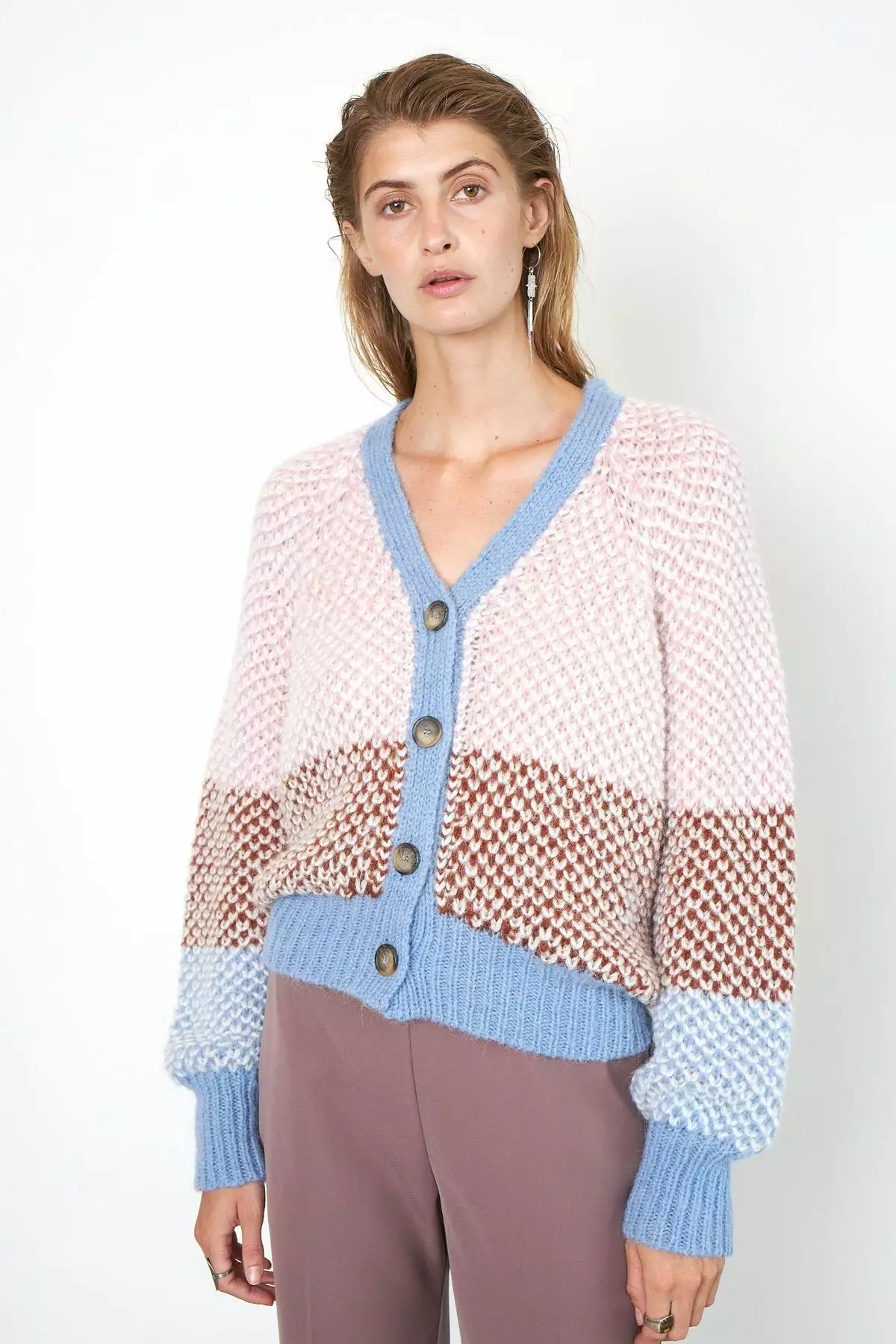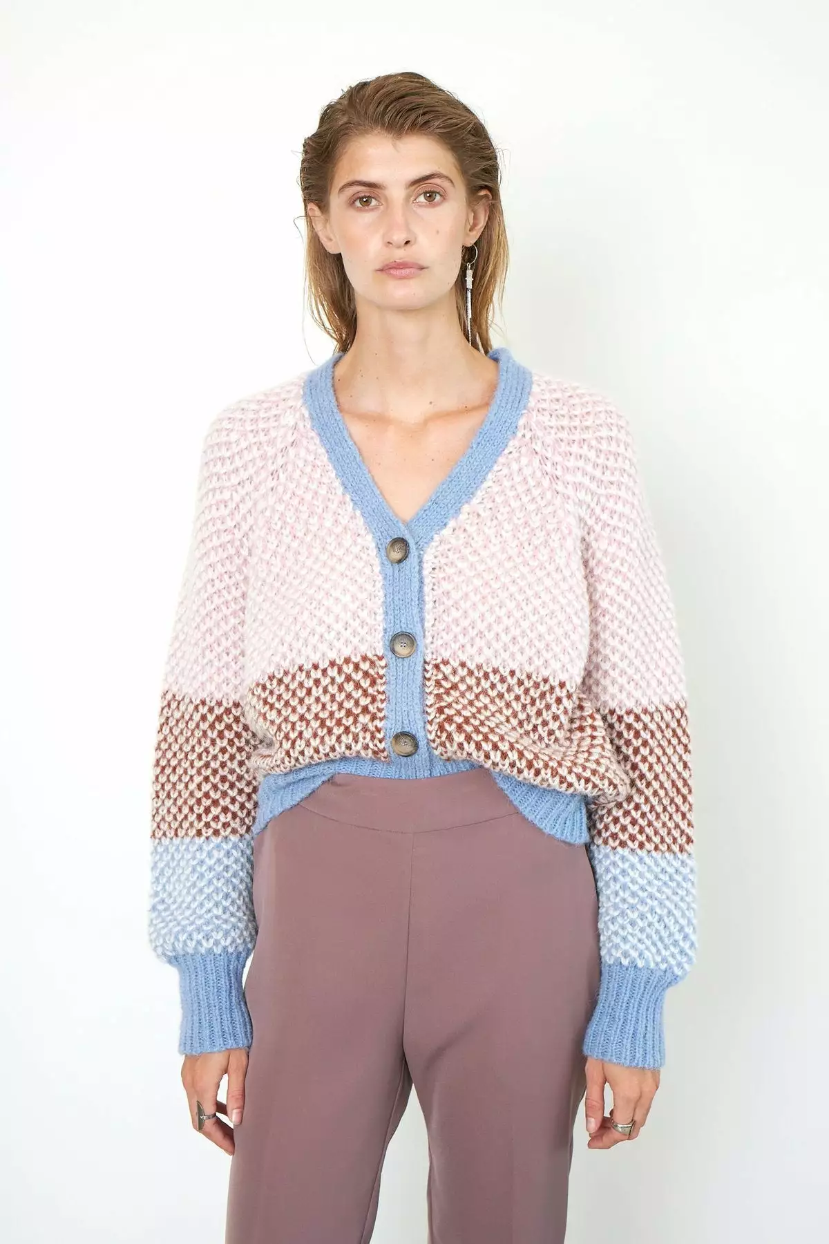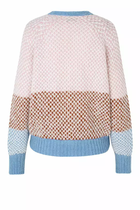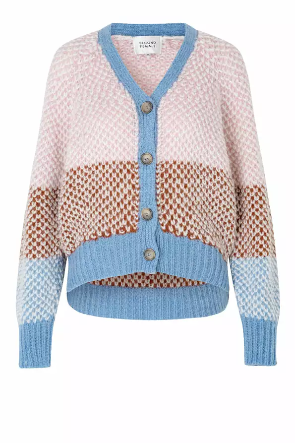 Berthe Knit Cardigan fra Second Female. En supersøt cardigan i friske farger. Laget i en fin alpakka-mix. Genseren har dyp v-hals, store vide ermer og knapper.