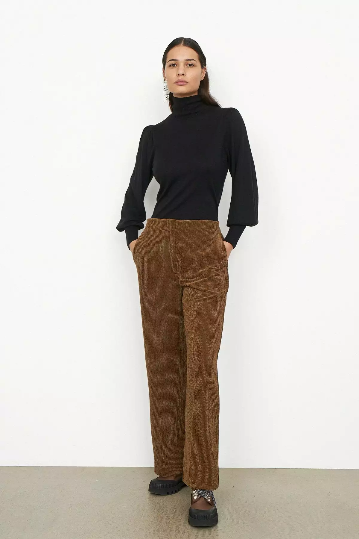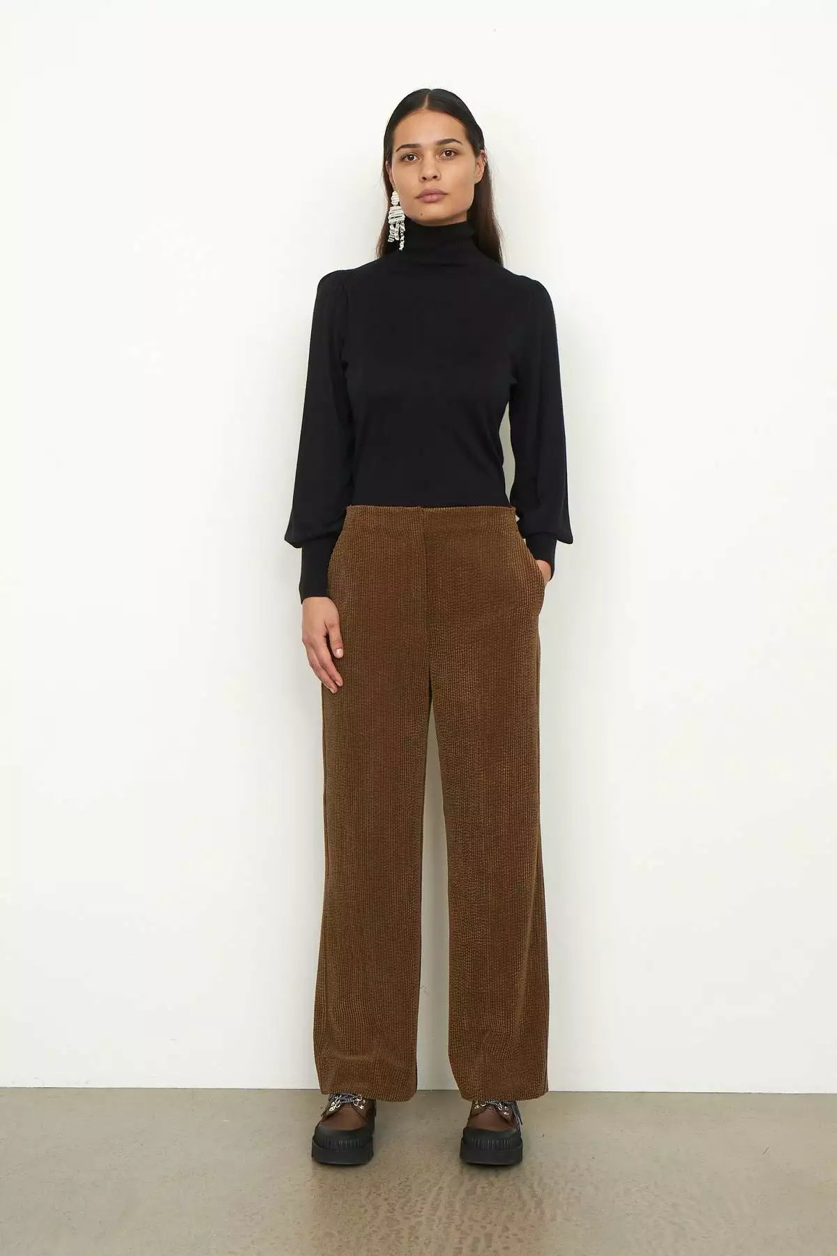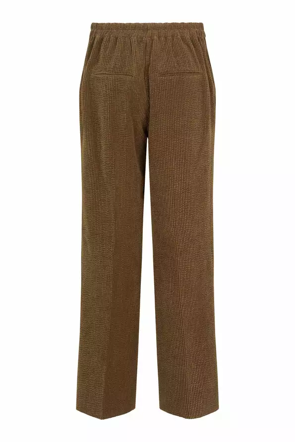 Boya Trousers fra Second Female. Vakre kordfløyelbukser i en blanding av polyester. Buksen har rett midje foran og stikk bak. Den har krølllinjedetaljer og paspoillommer bak. Buksen er mid-rise og brede bukseben. Match denne med Boya Shirt for et komplett sett!