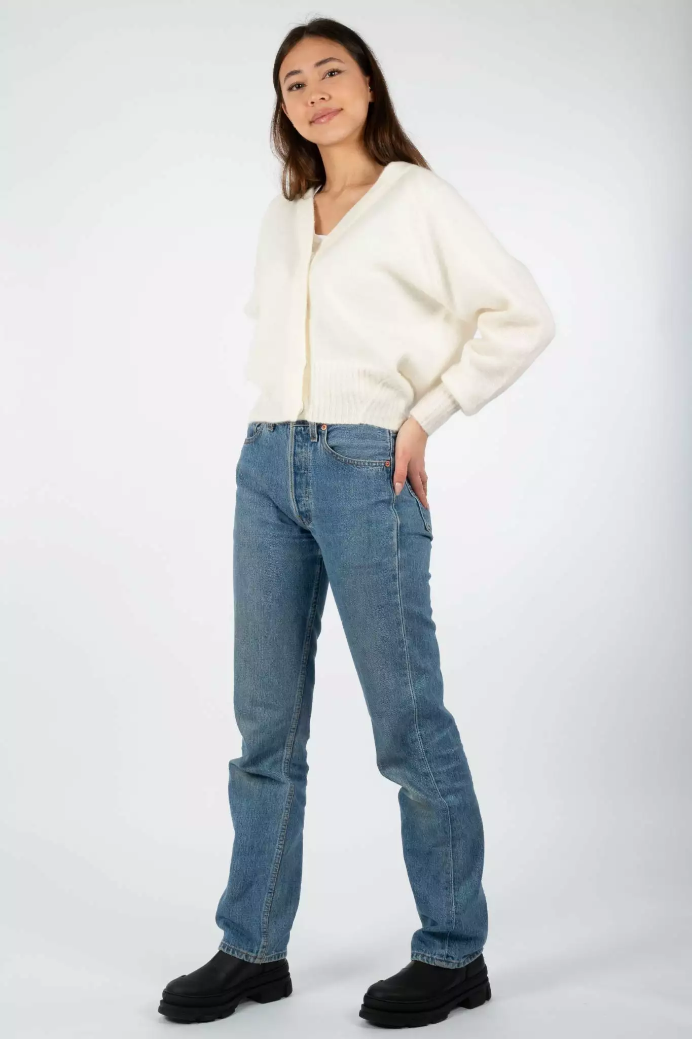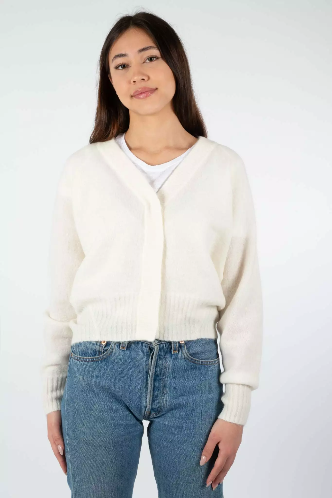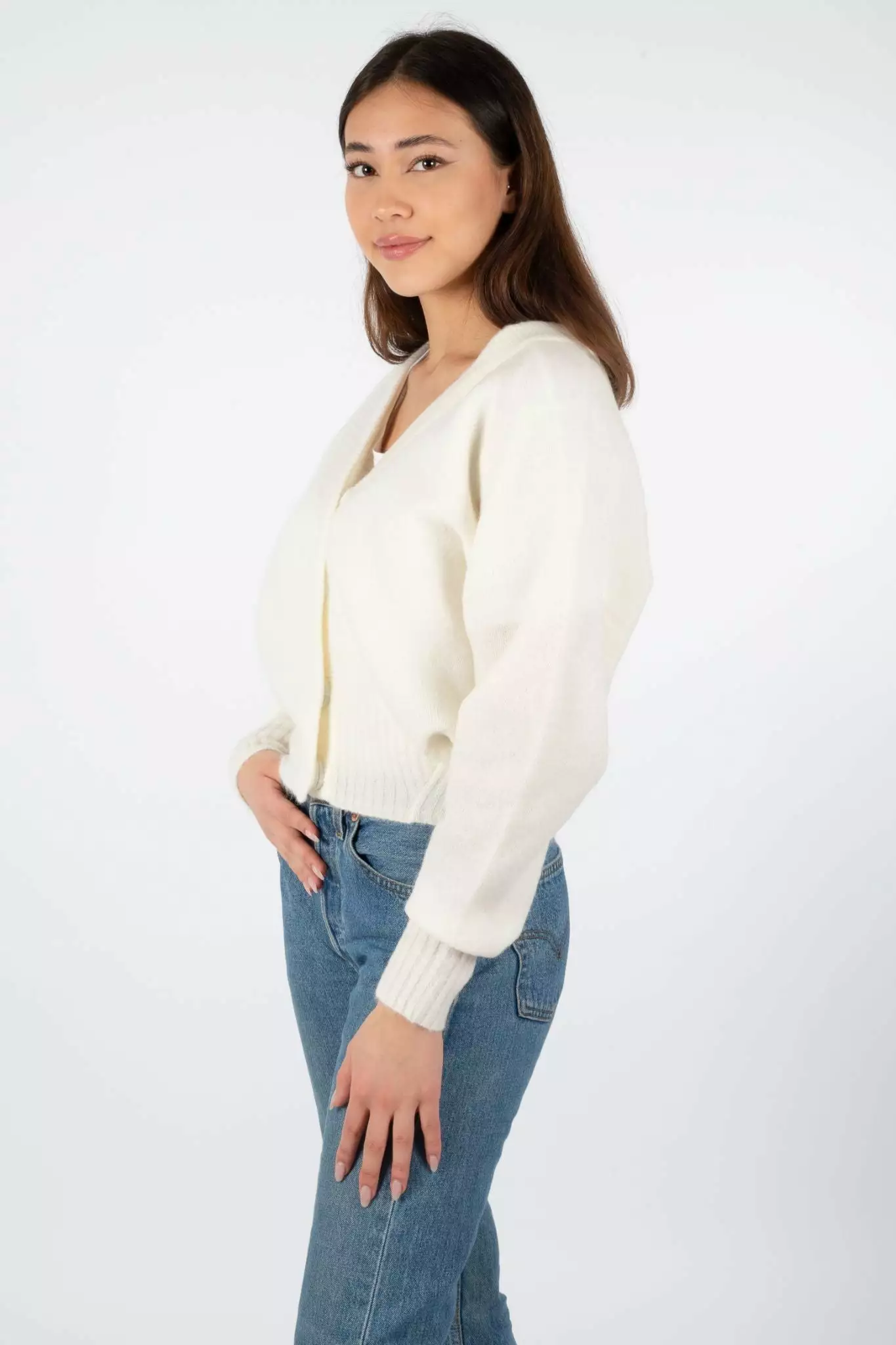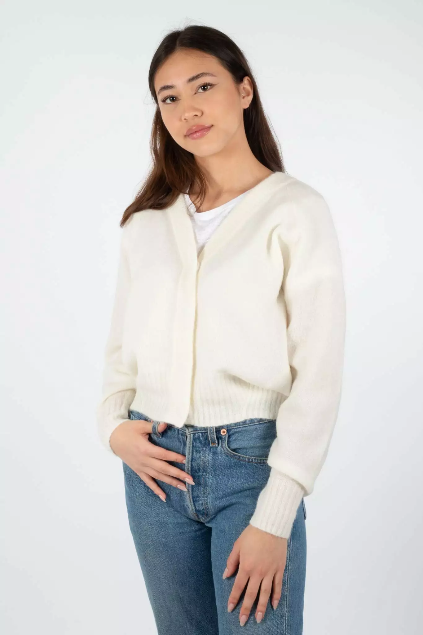 Brook Knit Boxy Cardigan er en deilig varm cardigan fra Second Female. Genseren har V-hals og store knapper. Fin cardigan som passer over både t-skjorter og gensere. Løs og boxy passform.