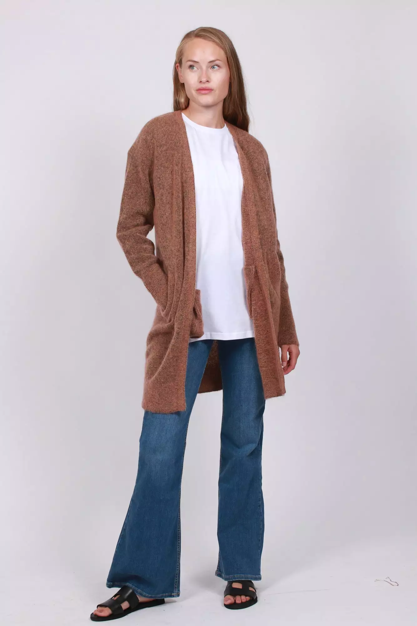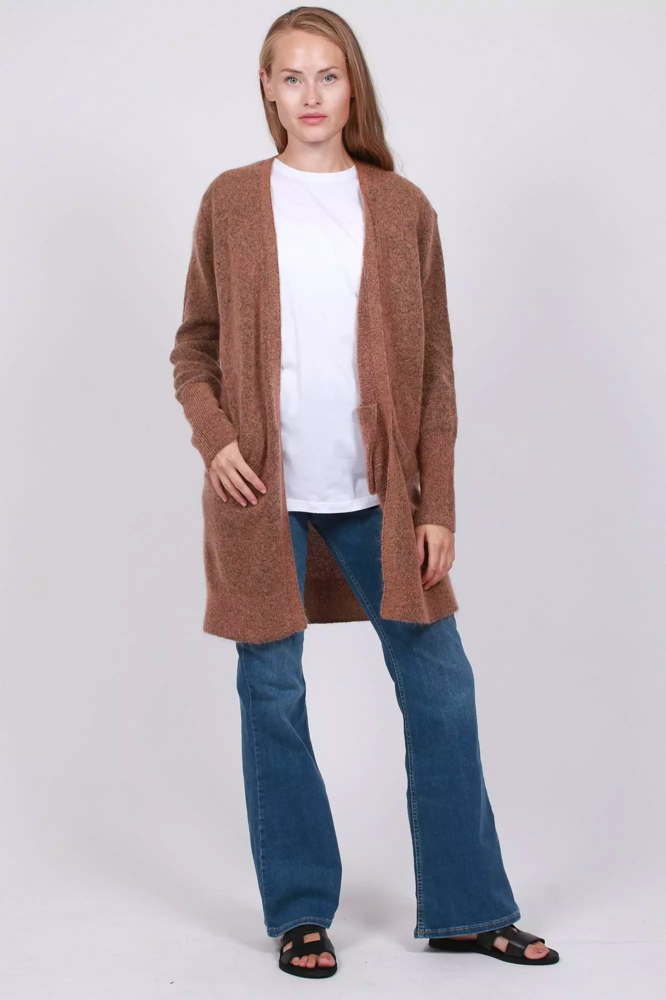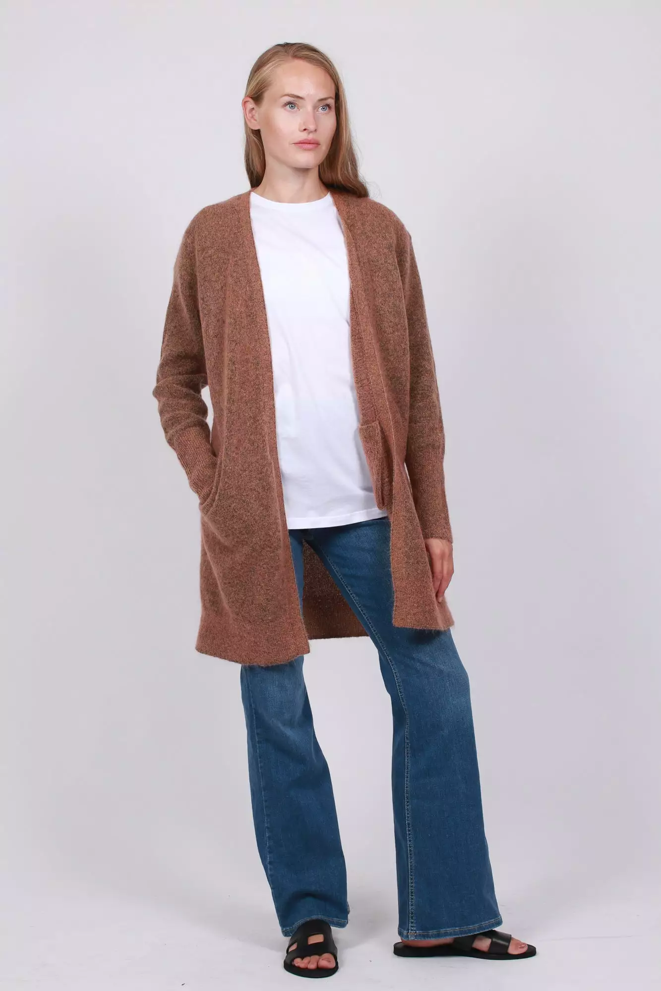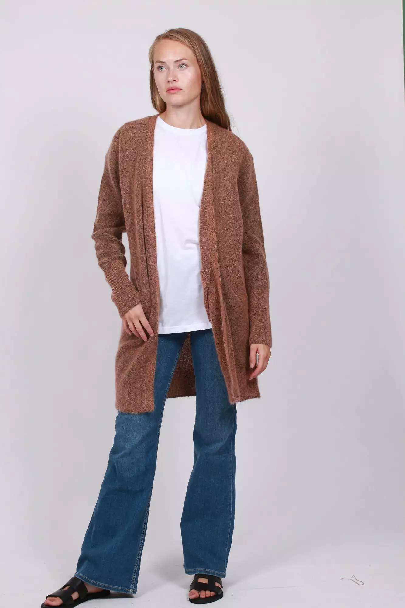 Brook Knit New Pocket Cape fra Second Female er en deilig cardigan laget av fin mohair-blanding. Cardiganen er lang og har to lommer på sidene.