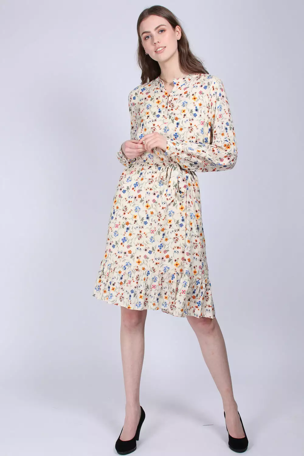 Søt kjole fra Second Female. Kjolen er langermet og har båthals, kjolen har egen underkjole.