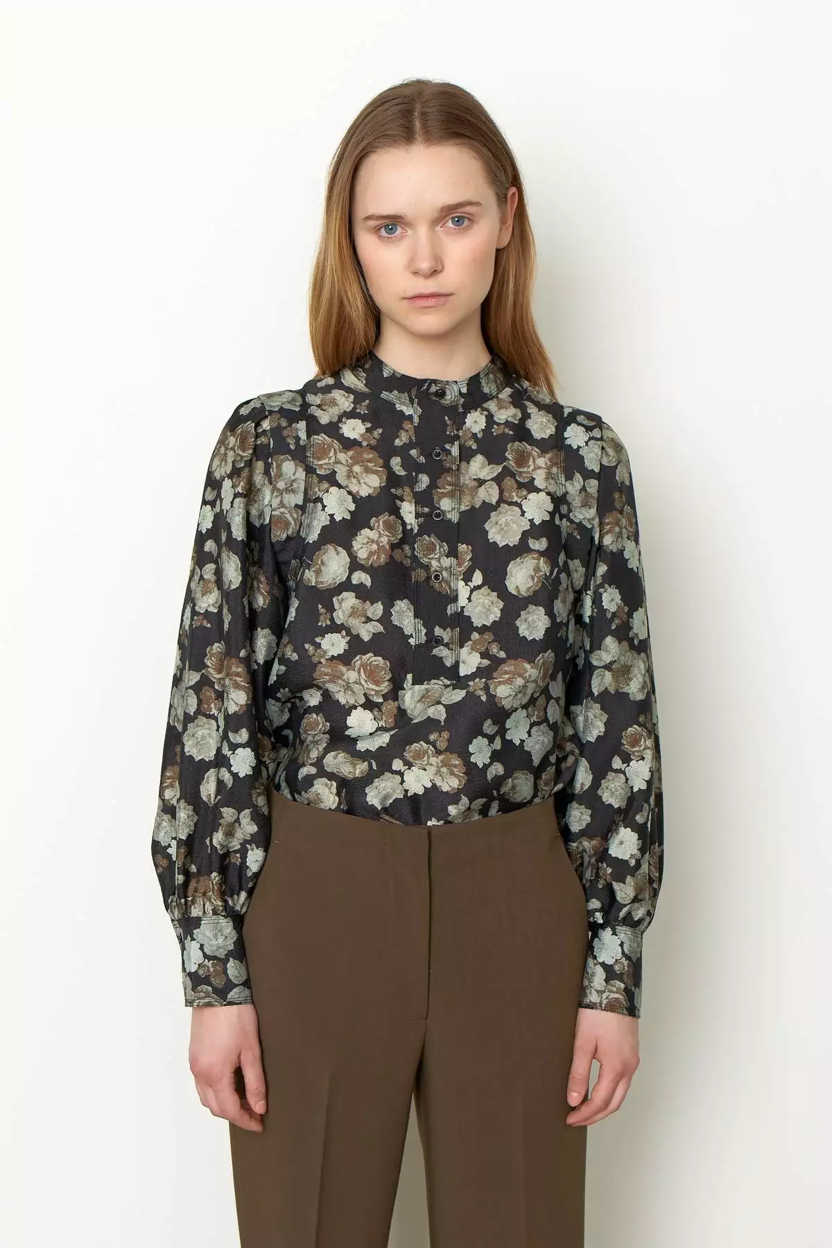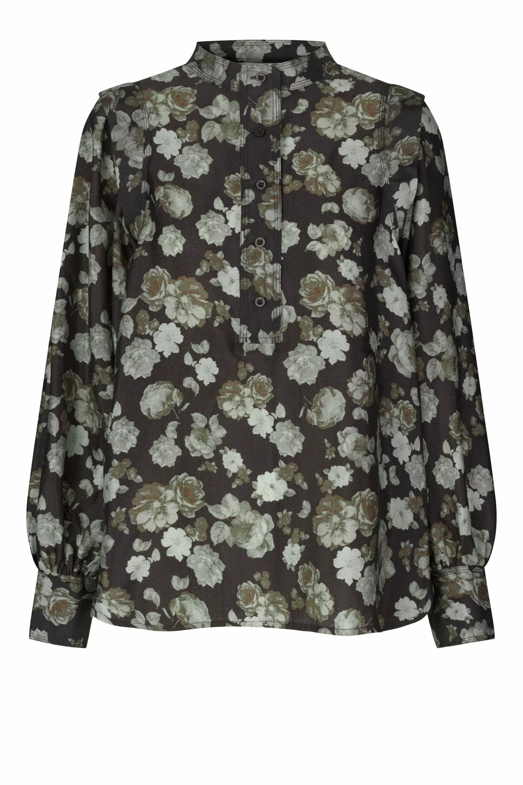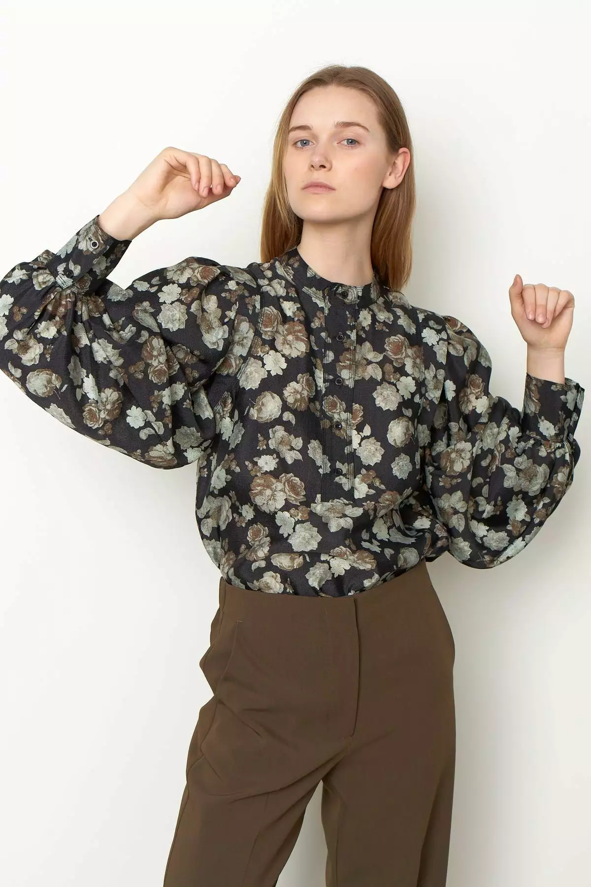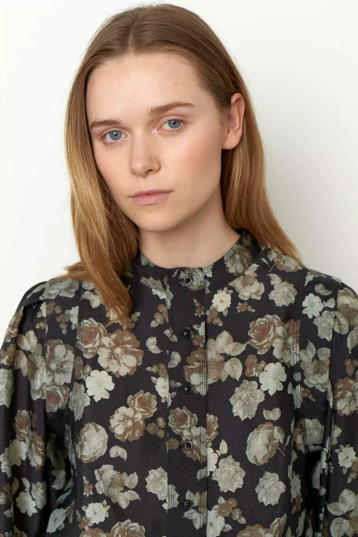 Ellea Blouse fra Secon Female. Bluse fra Second Female med lekkert blomsterprint. Ellea Blouse har halvhøy krage, kort knappestolpe i front og knappelukking på mansjettene. Brukes like enkelt til noen løse jeans for en avslappet look, som til en dressbukse når du skal på kontoret.