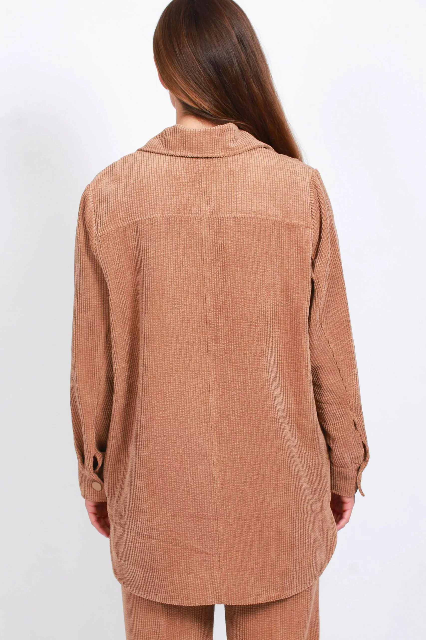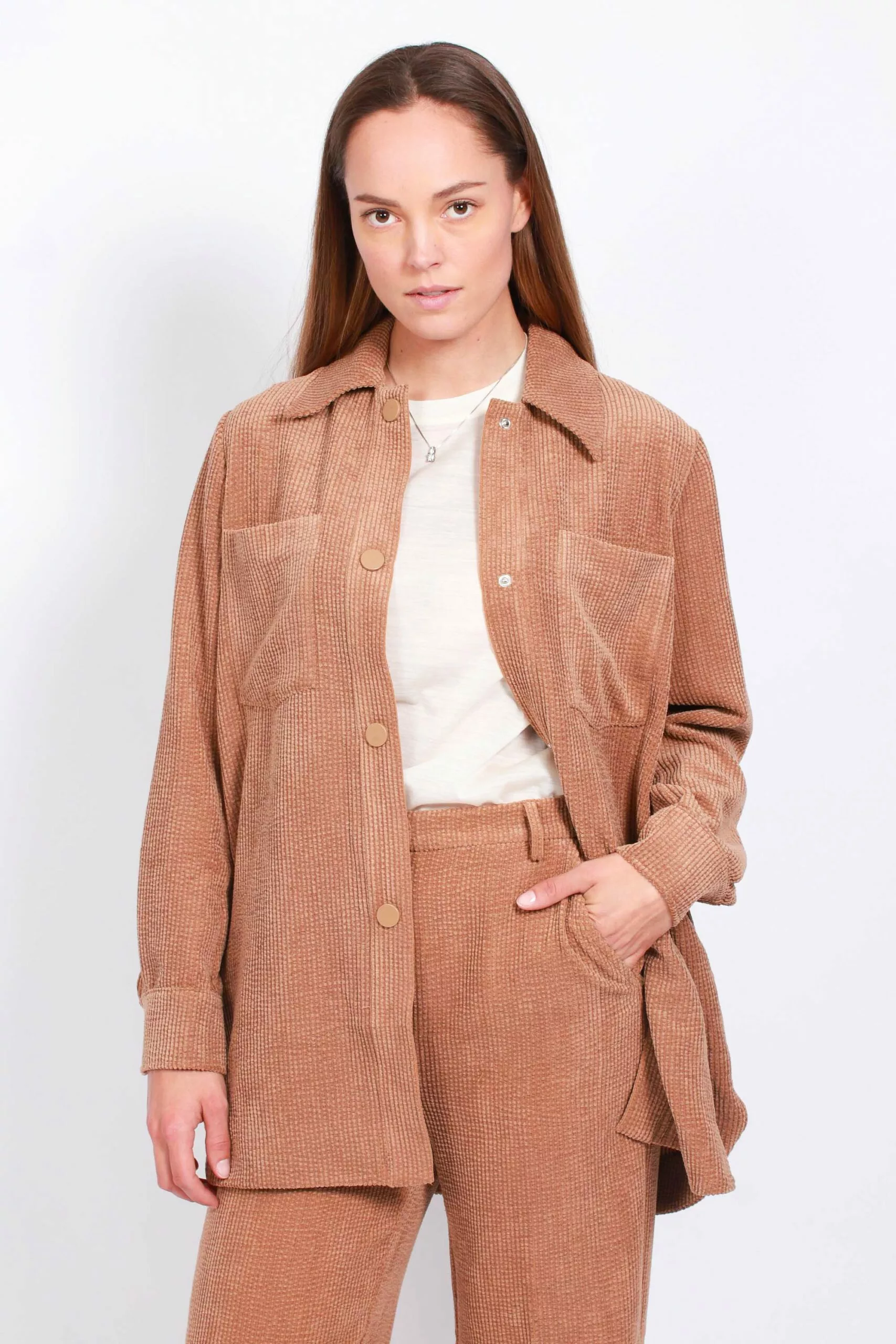 Kul skjorte i kordfløyel fra Second Female. Oversized skjorte med krage, to store lommer og store knapper. Behagelig stoff.