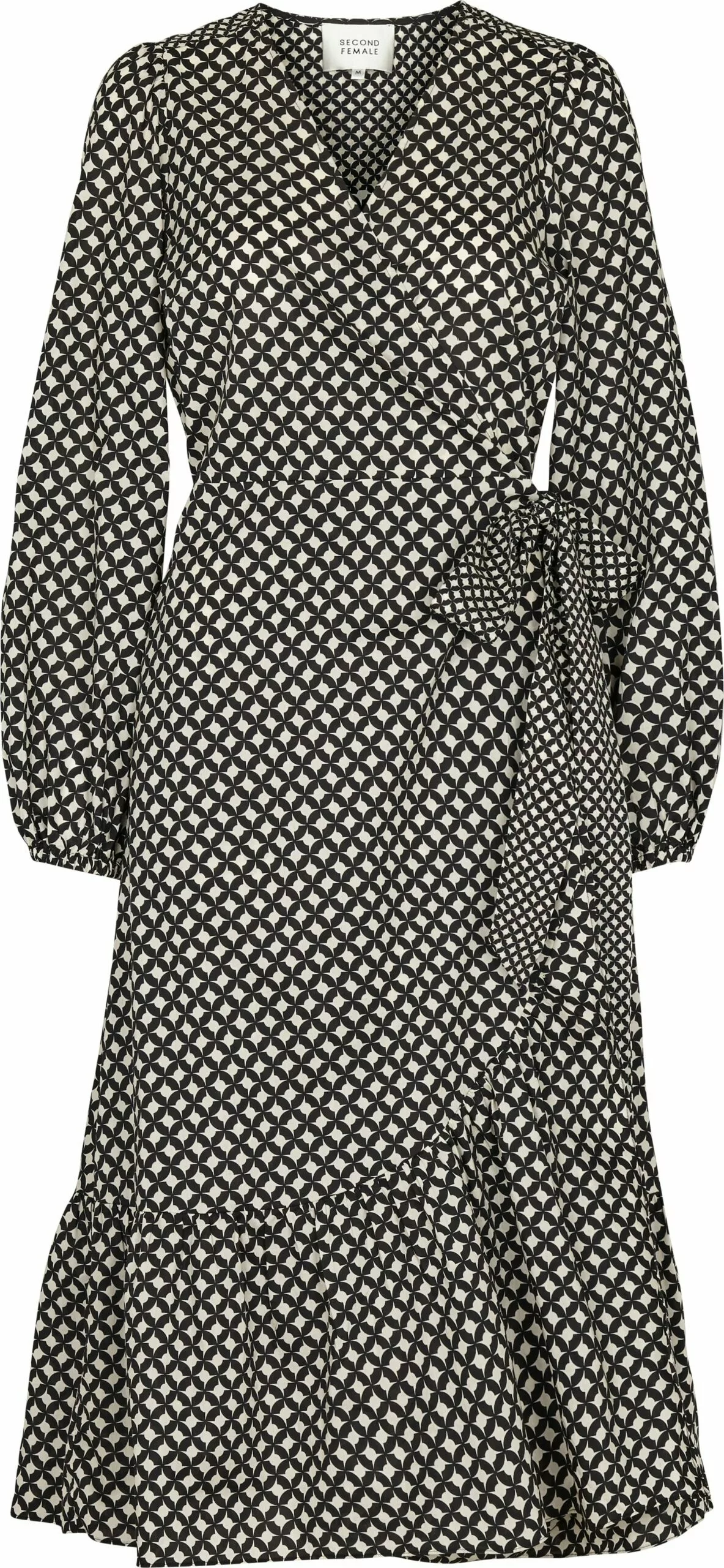 Nydelig kjole fra Second Female i print. Laget i et delikat bomullsstoff. Wrapkjole med belte og v-hals.