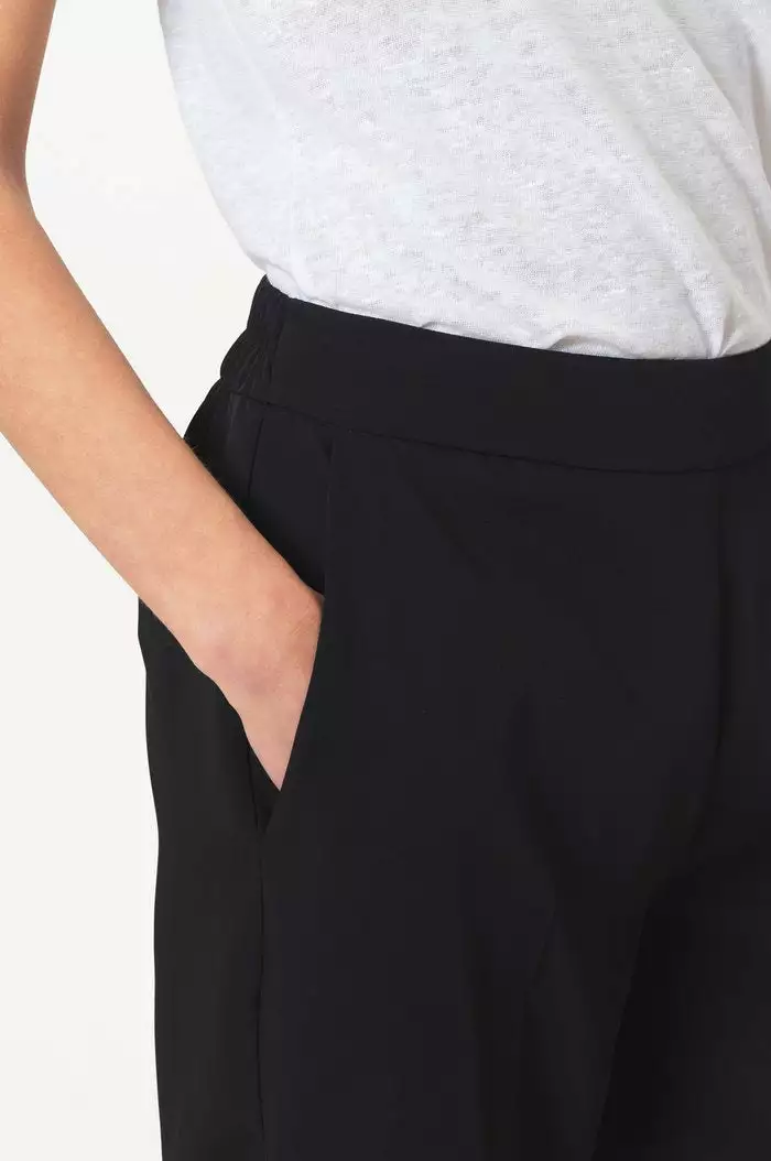 Garbo Trousers fra Second Female. Superfine basic bukser som passer til alt og alle anledninger. Bruk den til jobb til en fin skjorte eller på fest med en fin topp. Behagelig og sitter fint på kroppen.