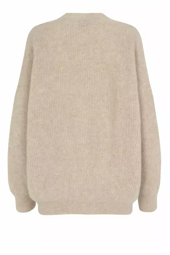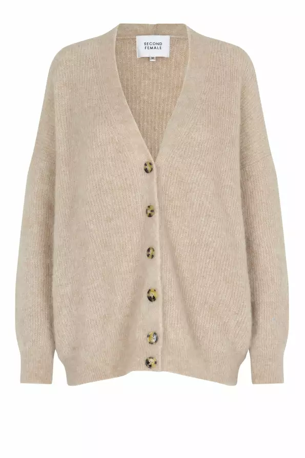 Grethe Knit Cardigan fra Second female. Ny strikkefavoritt som vi vil pakke oss inn med denne sesongen! Grethe Cardigan er en myk ribbestrikket genser med varm mohairblanding. Den kommer i en løs og avslappet passform med dyp utringing og knapper i front. Et must have i høstgarderoben – sleng den over antrekket for å holde ekstra på varmen!