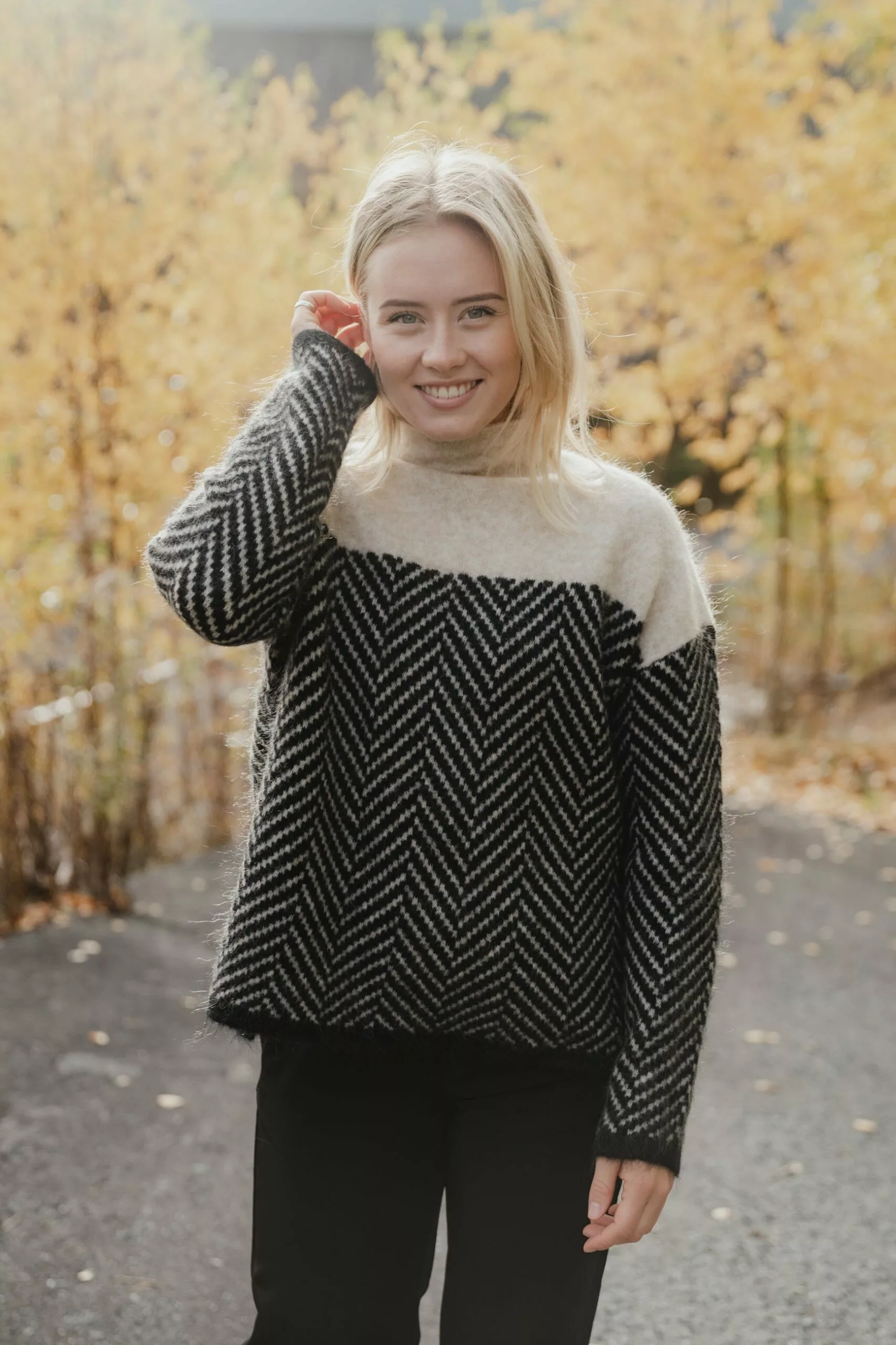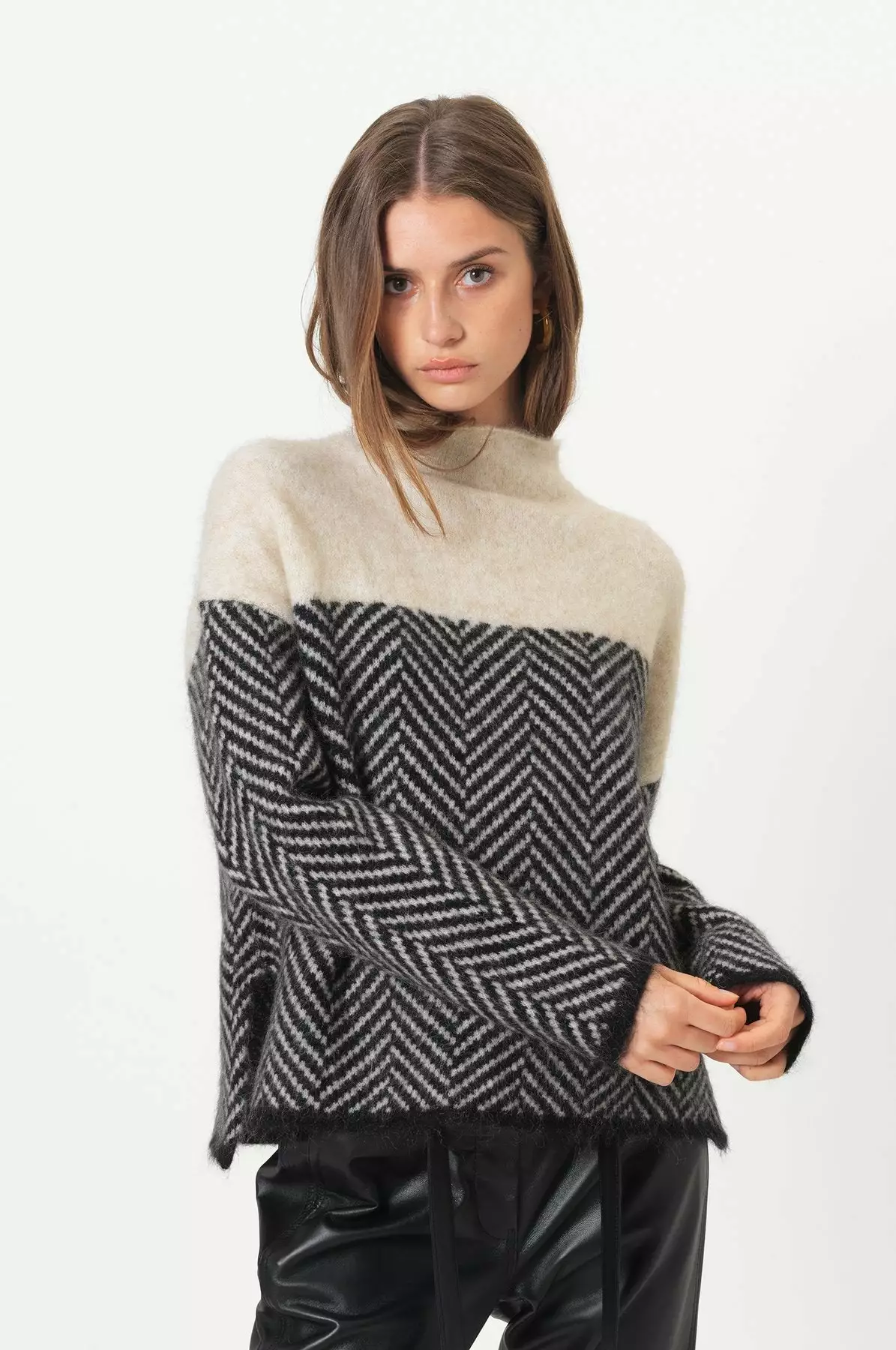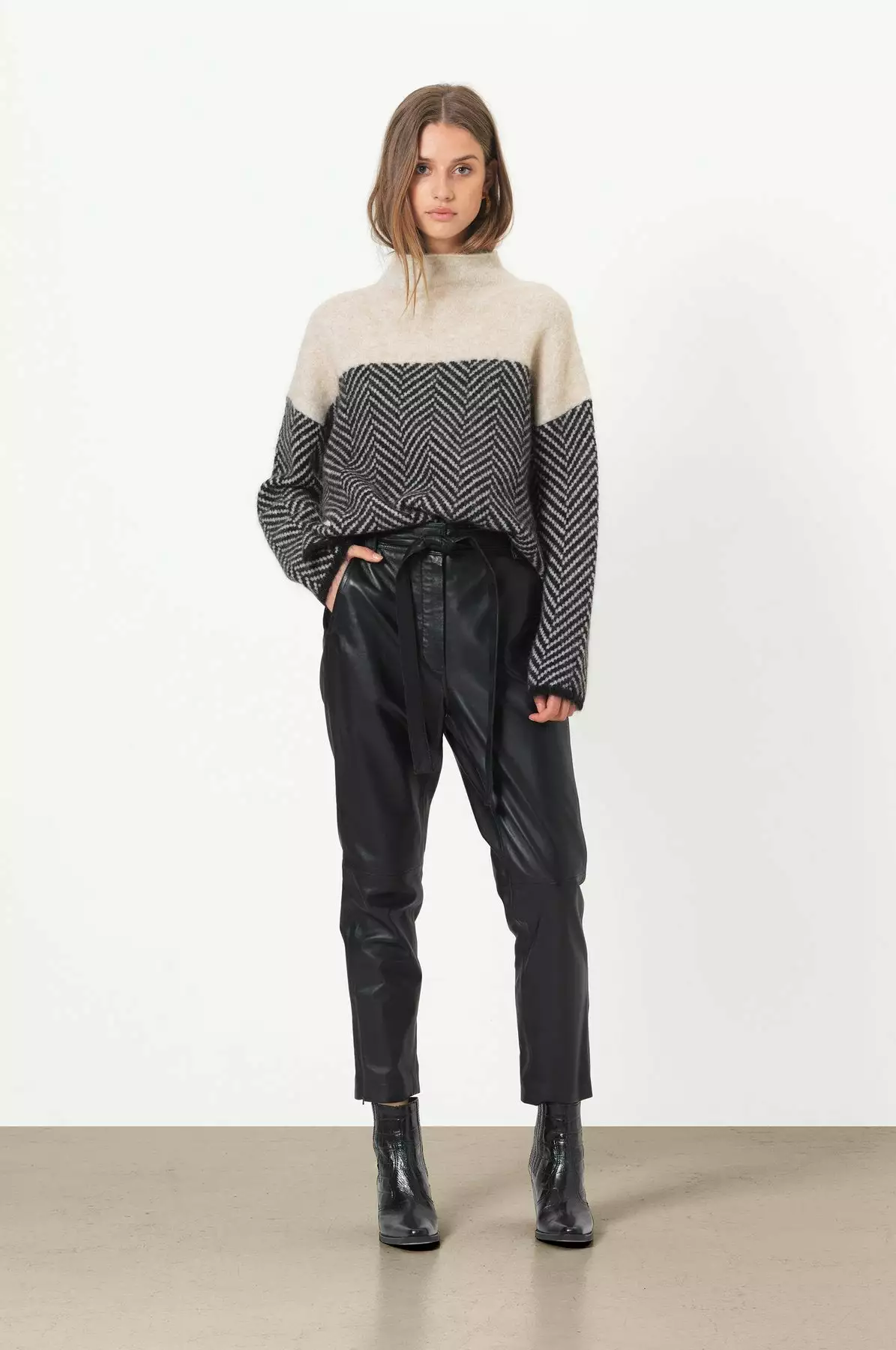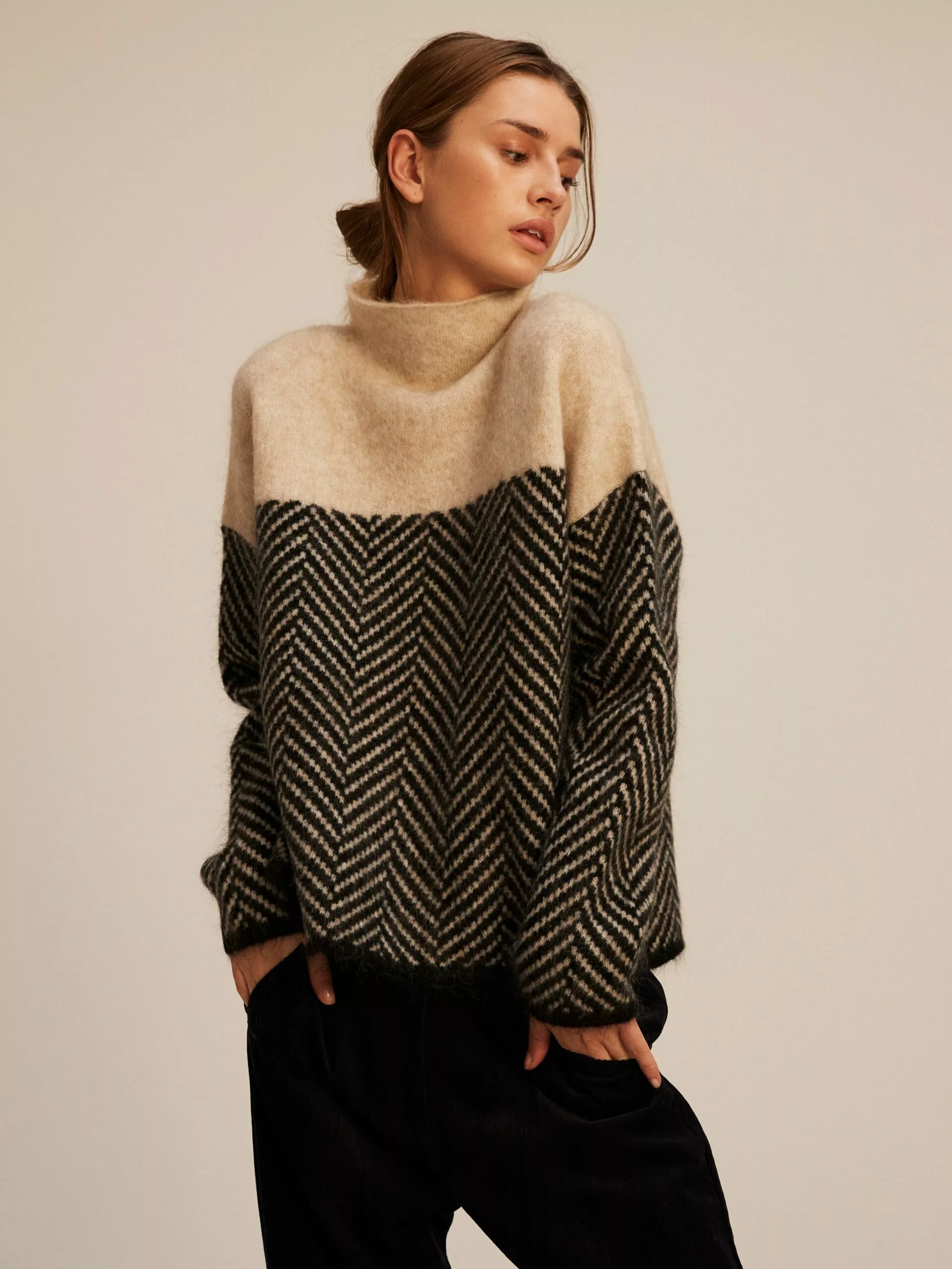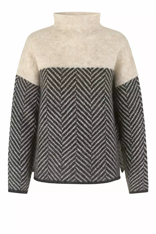 Herrin Knit T-neck fra Second Female. Myk og deilig strikk med herring bone print laget av en fin mohair-blanding. Genseren har høy hals og lave skuldre. Herrin Knit T-neck er perfekt utover høsten. Style den gjerne med et par skinnbukser og noen kule boots.