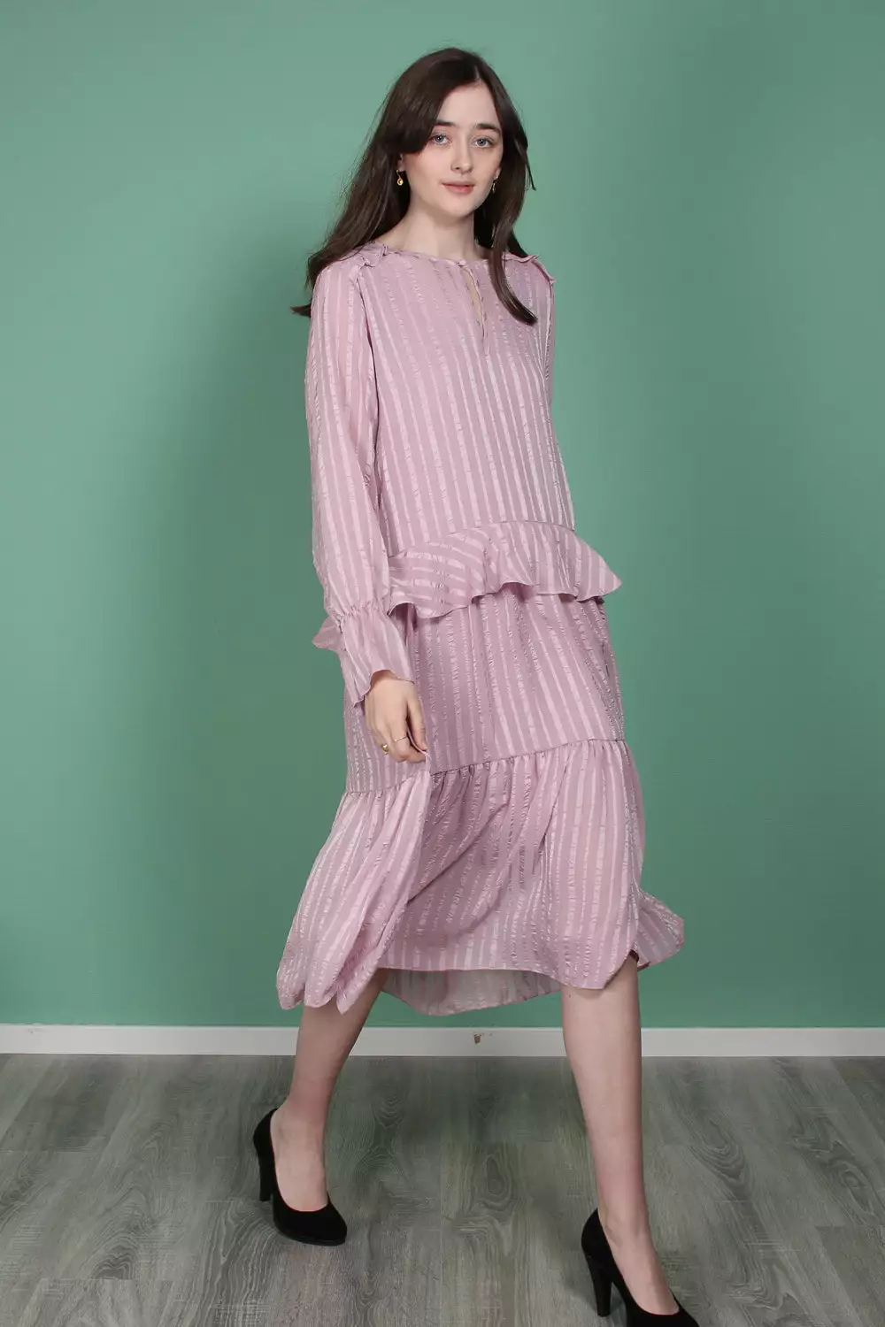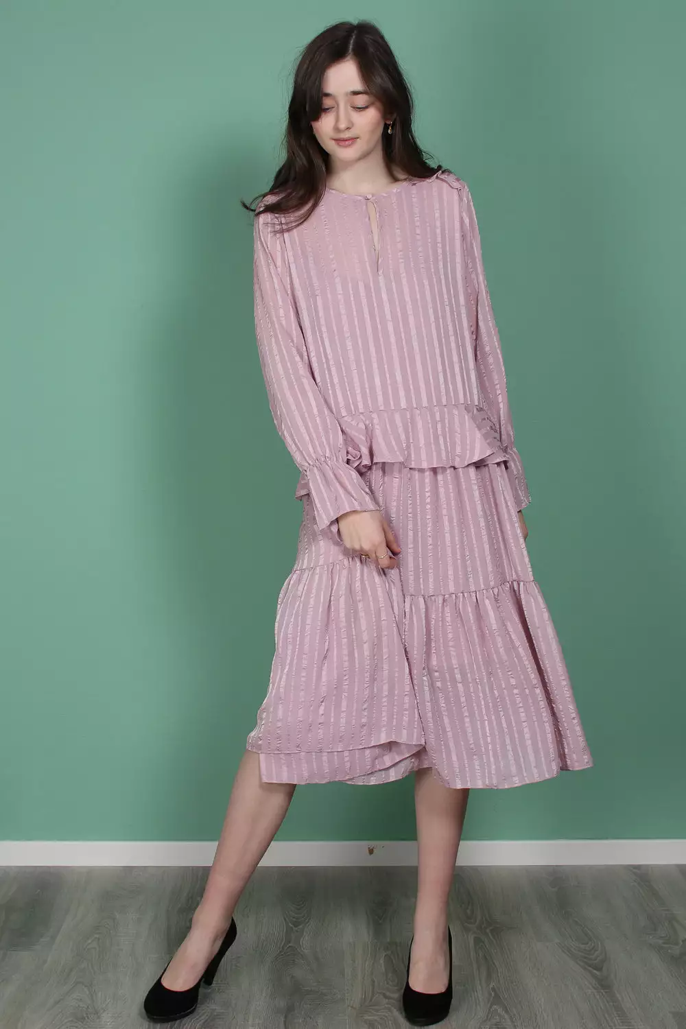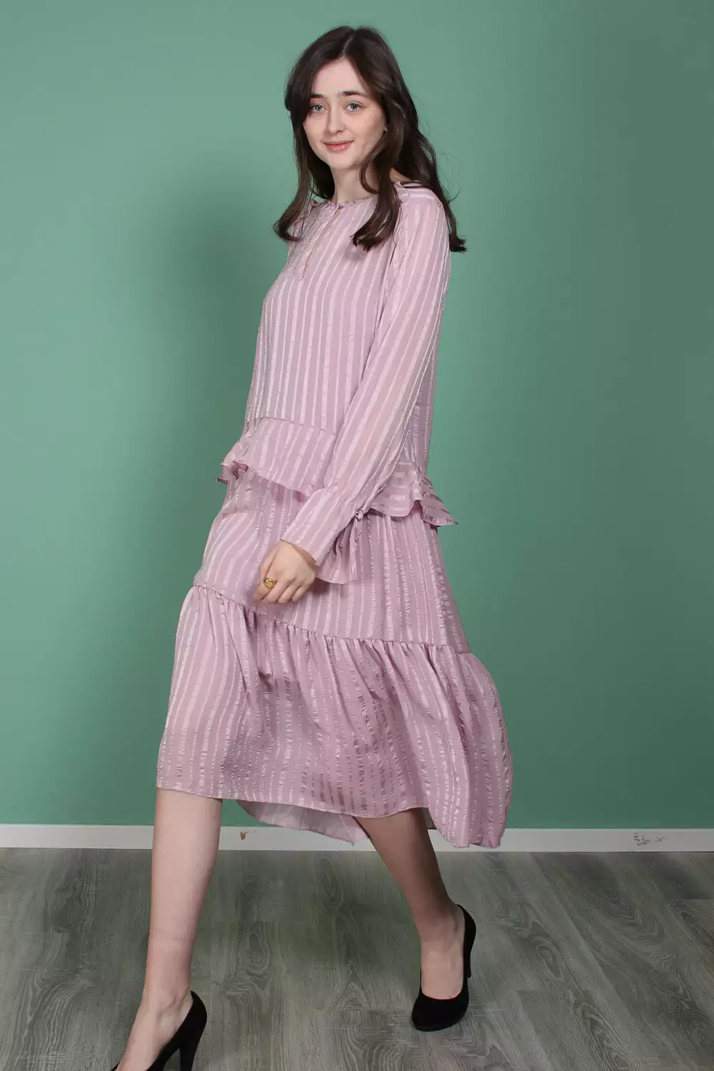 Fin langermet kjole. Kjolen er vid i formen, noe som gjør at den er veldig behagelig å ha på seg.