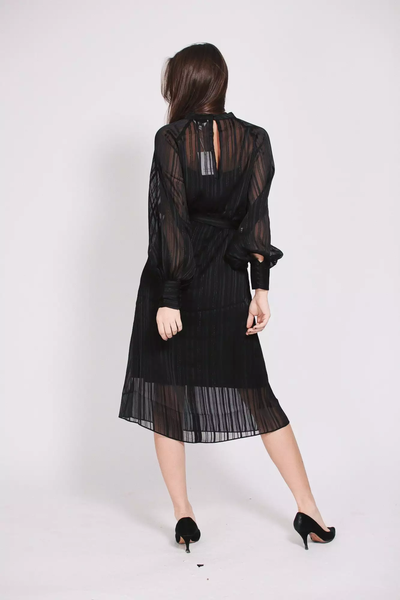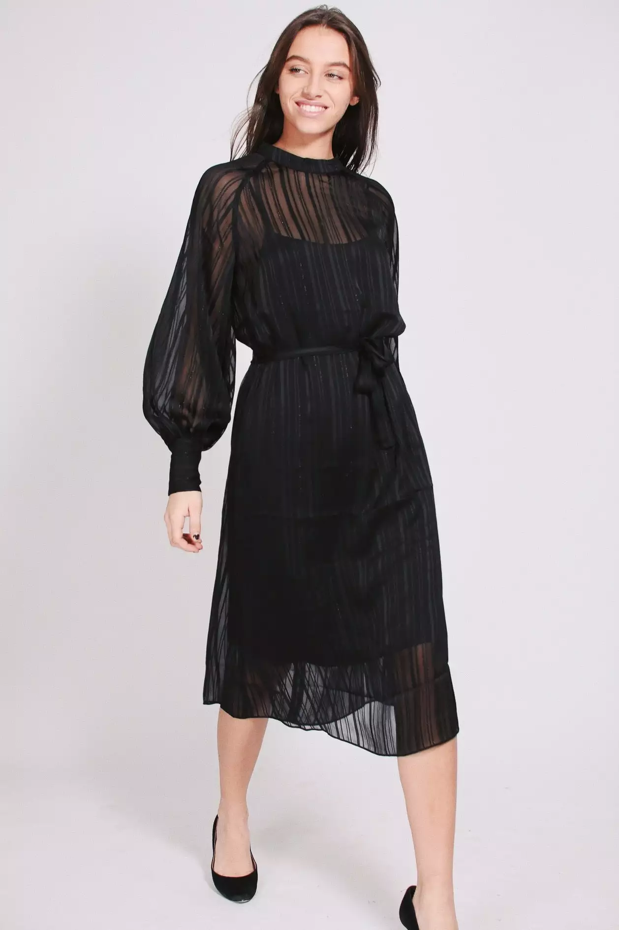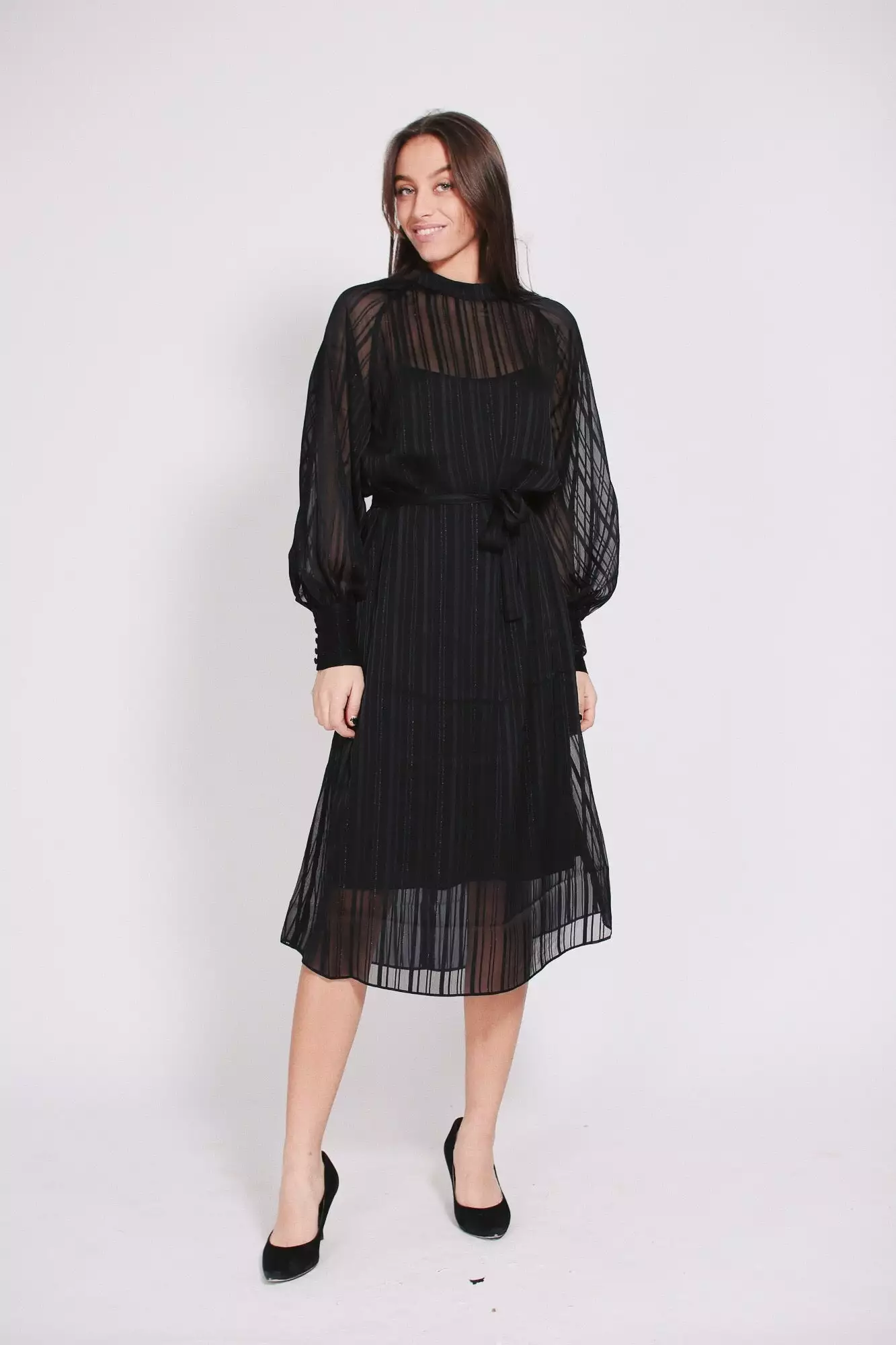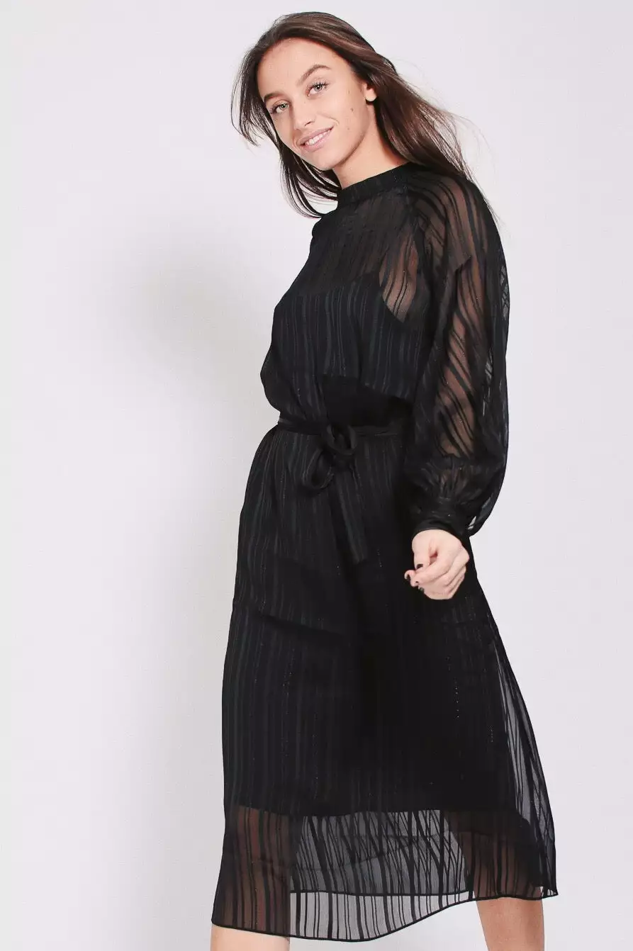 Chic kjole fra Second Female. Utrolig fin kjole med belte i midjen. Passer perfekt til julebord sammen med et par heler. Underkjole følger med.