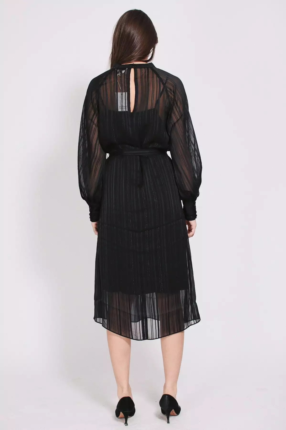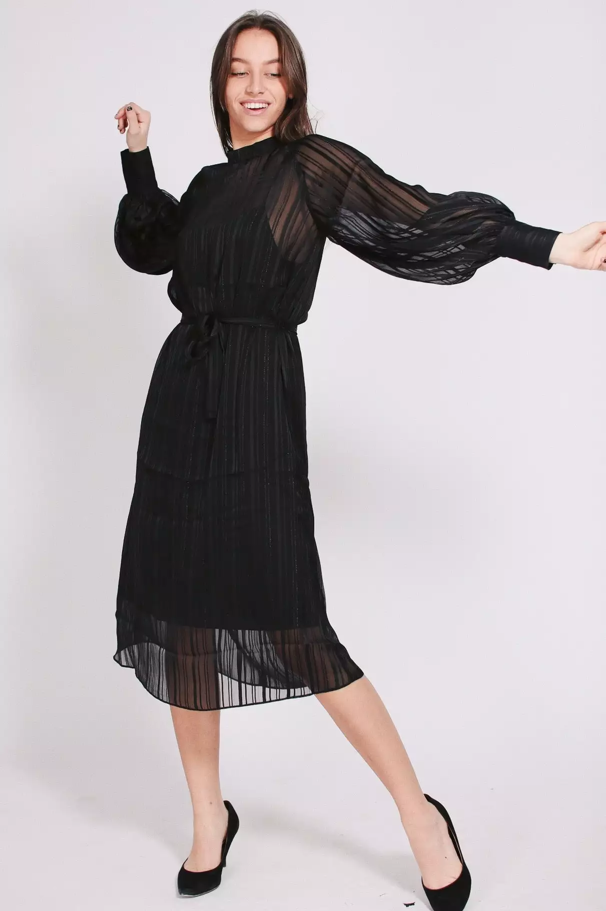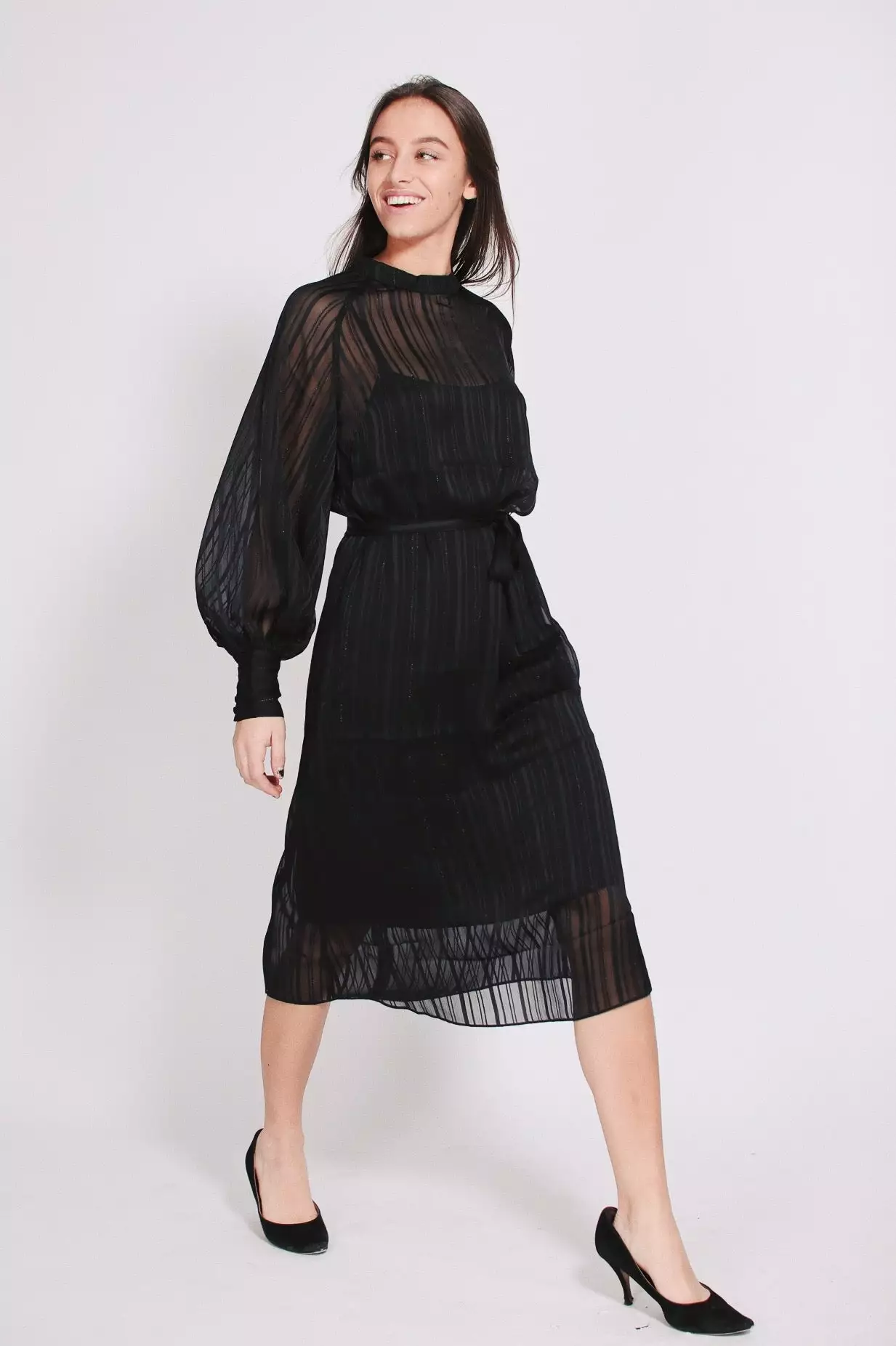 Chic kjole fra Second Female. Utrolig fin kjole med belte i midjen. Passer perfekt til julebord sammen med et par heler. Underkjole følger med.