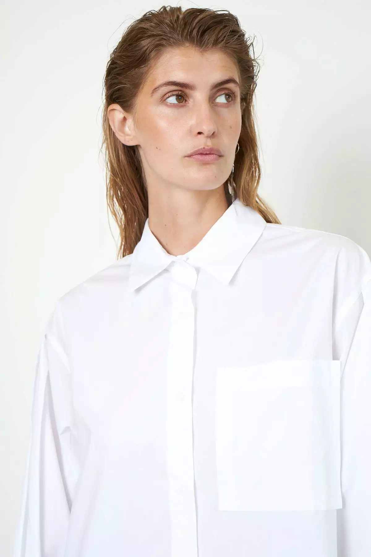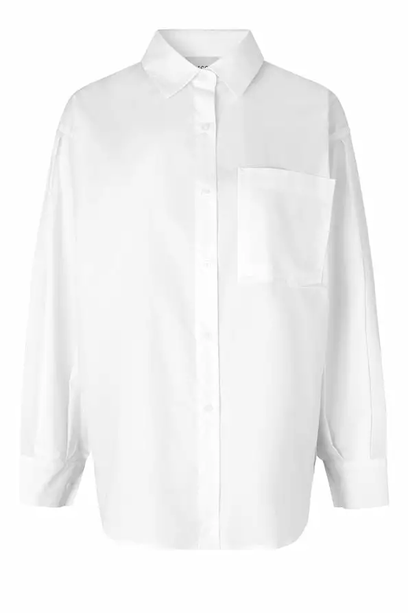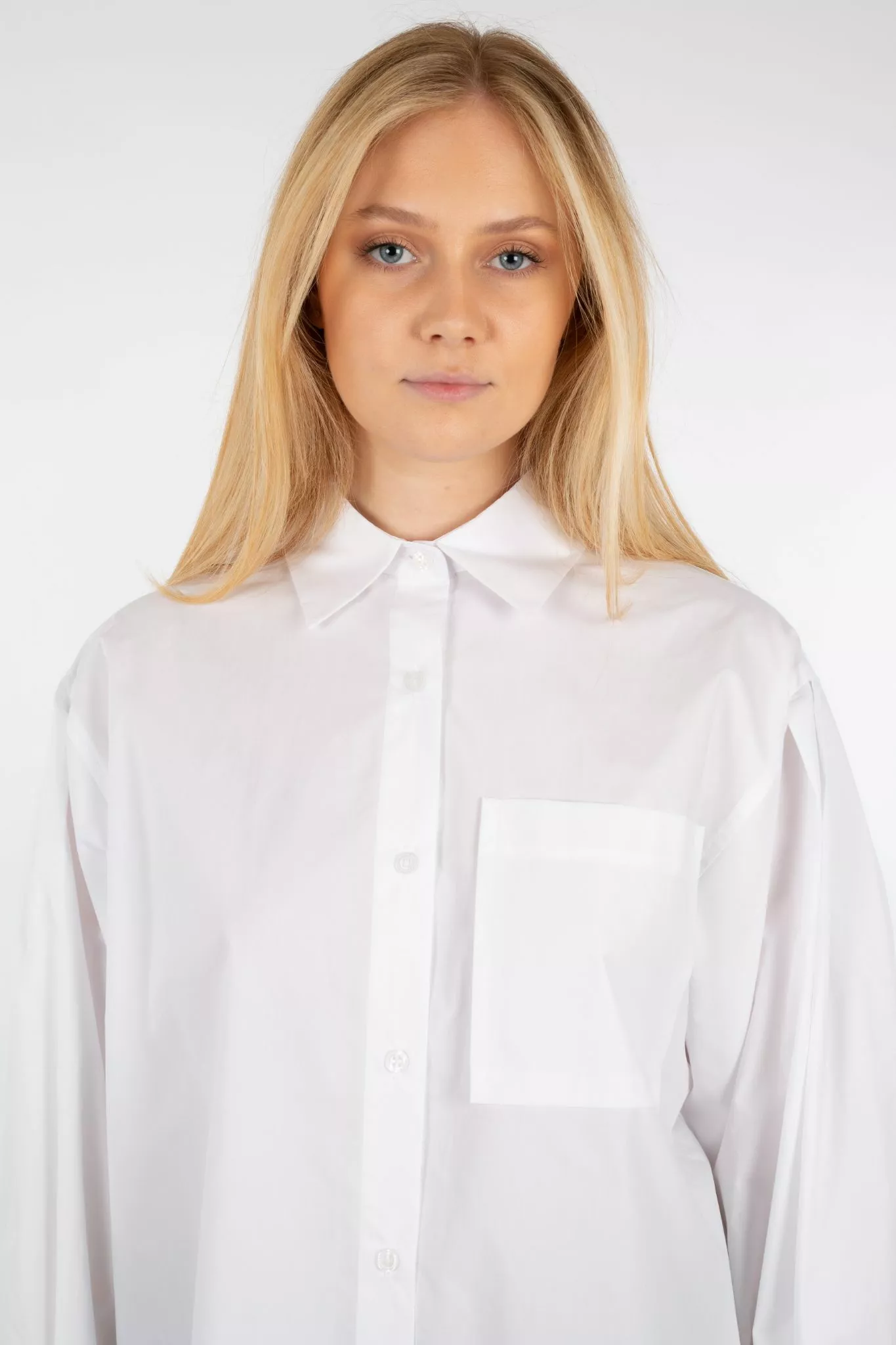 Larkin New Shirt fra Second Female. Nydelig skjorte laget i en fantastisk bomullskvalitet. Skjorten har fin krage, knapper og oversized lomme. Den perfekte hvite skjorten du kan style til både jeans og dressbukser.