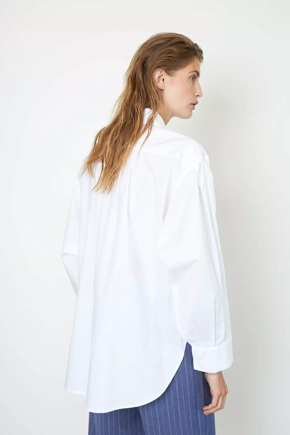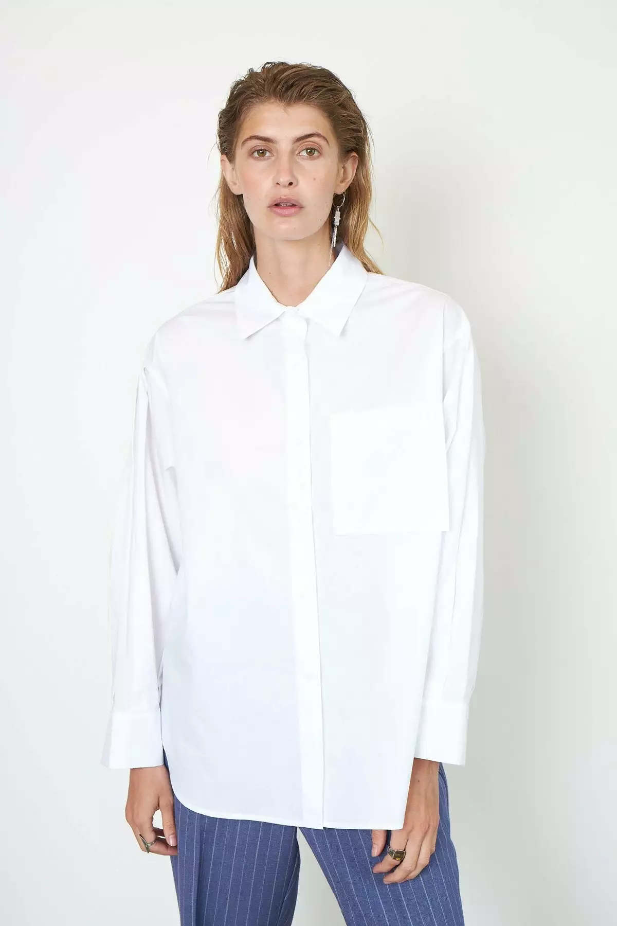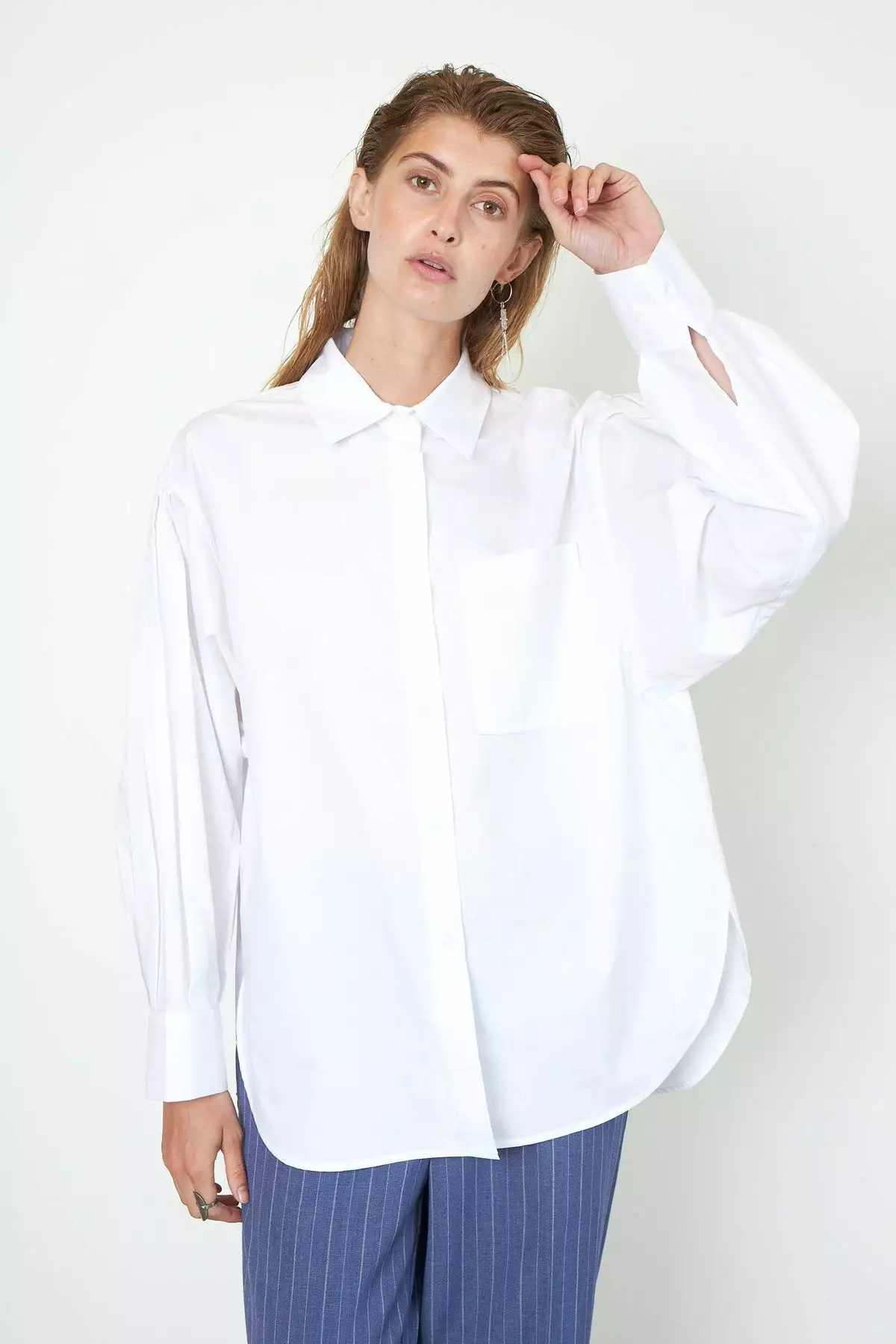 Larkin New Shirt fra Second Female. Nydelig skjorte laget i en fantastisk bomullskvalitet. Skjorten har fin krage, knapper og oversized lomme. Den perfekte hvite skjorten du kan style til både jeans og dressbukser.