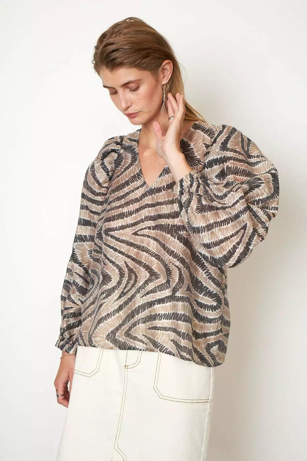 Lilly Blouse fra Second Female. En lett og ledig bluse i brune nyanser og lett tencel-stoff. Blusen kommer med v-hals og lange ermer. Perfekt til våren med både jeans og skjørt!
