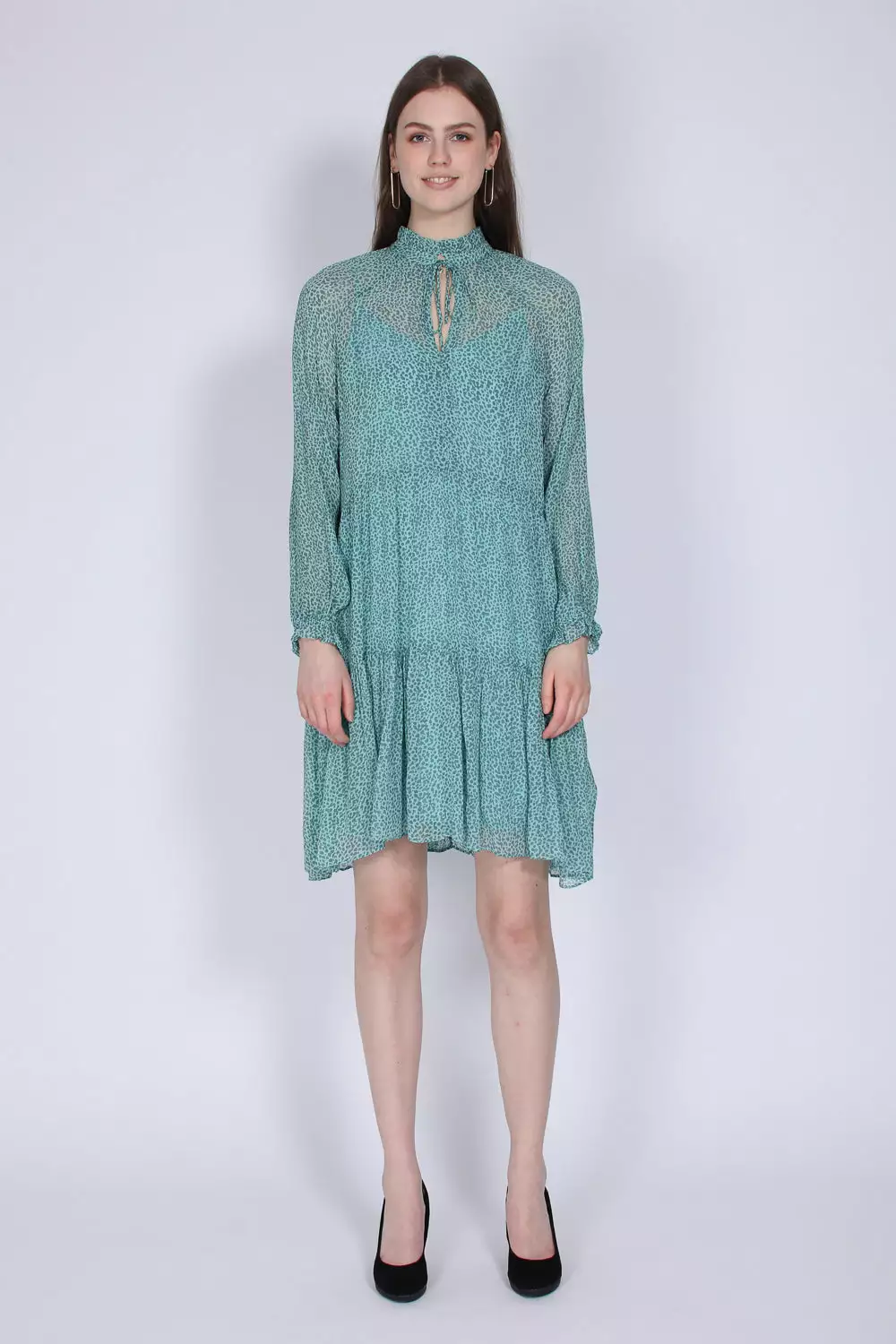 Fin halvlang kjole fra Second Female. Kjolen er langermet og passer bra både til hverdags og fest.