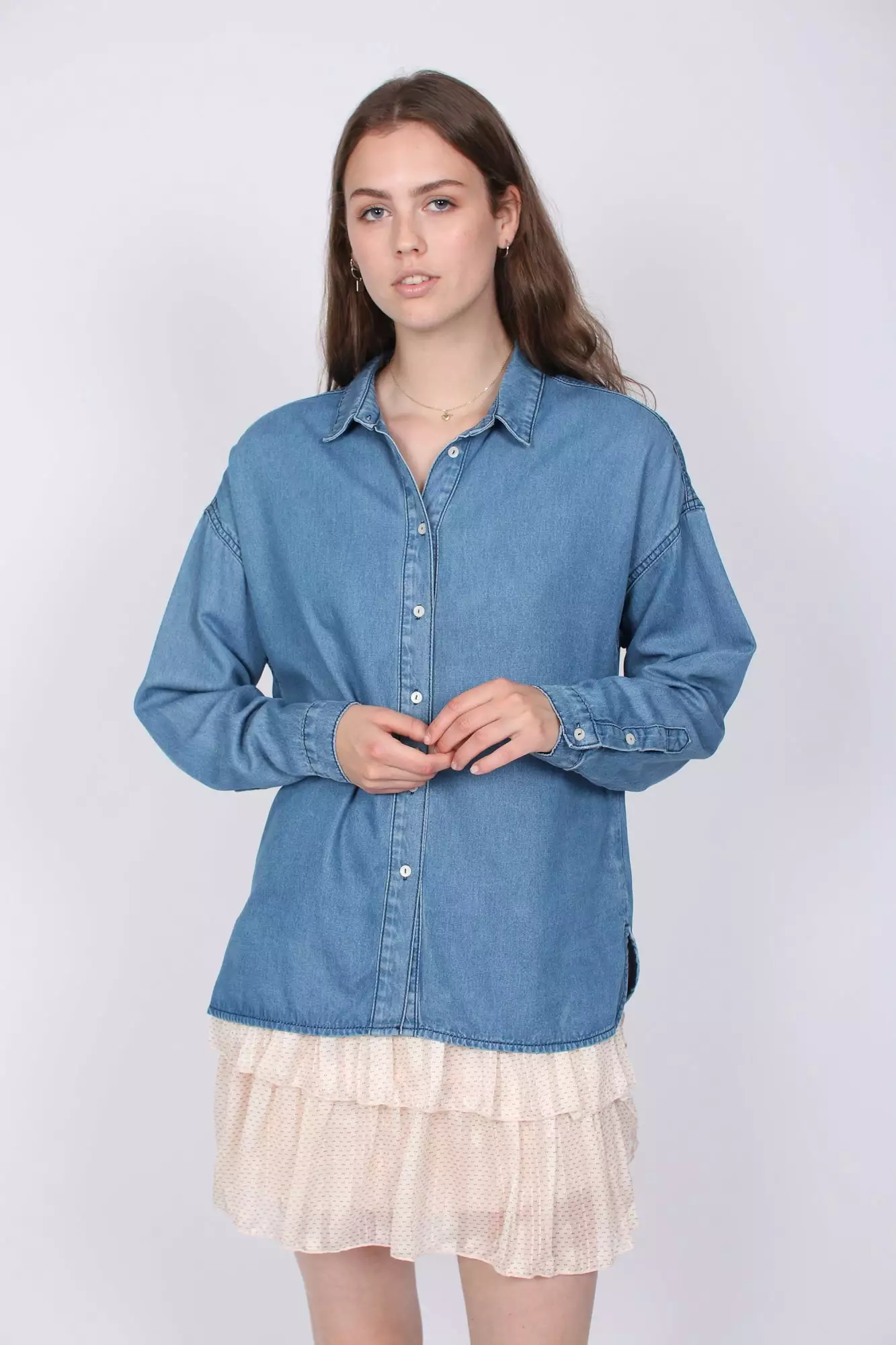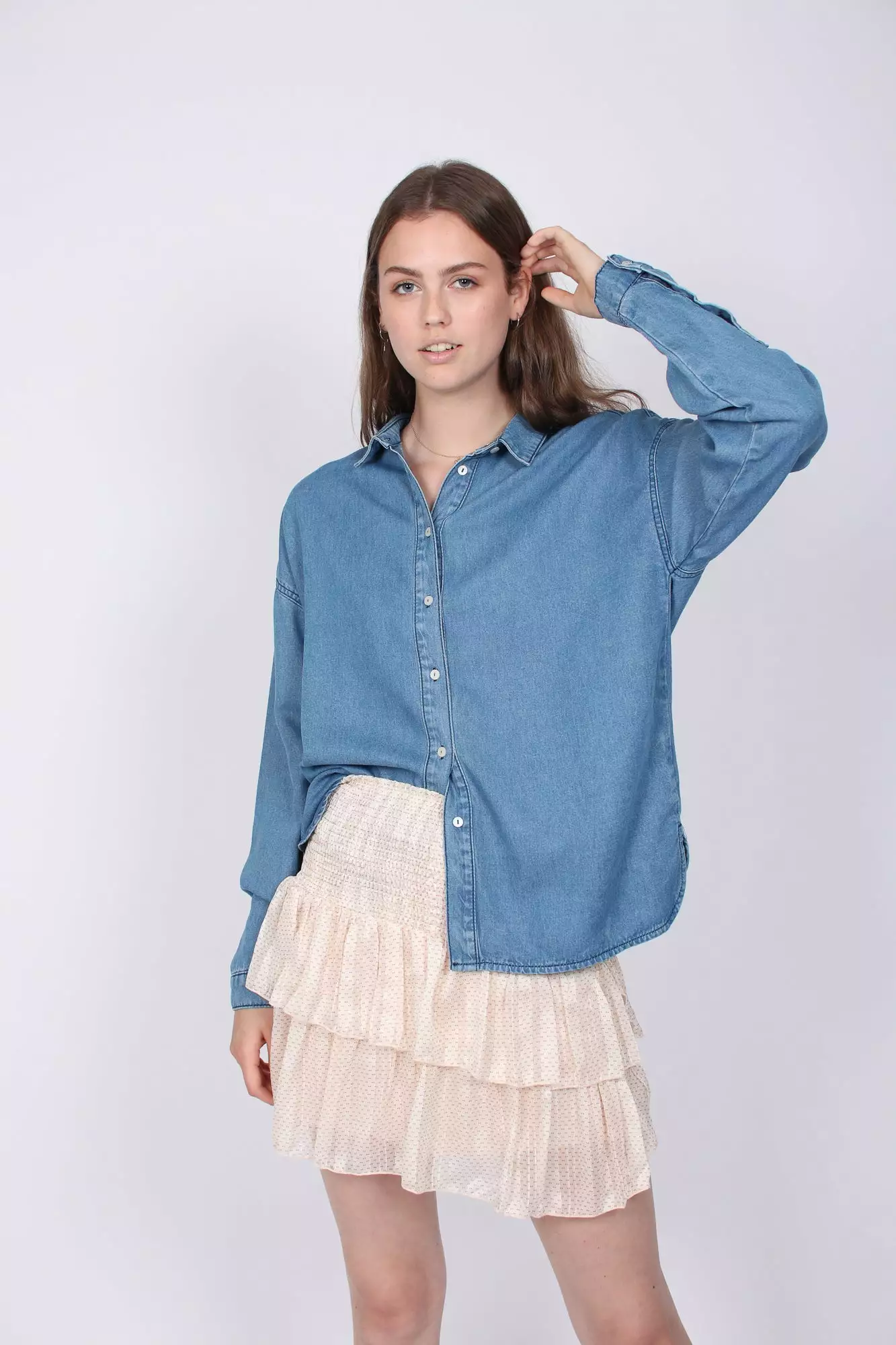 Kul denimskjorte fra Second female. Knapper til lukking. Fin skjorte om er lett i stoffet.