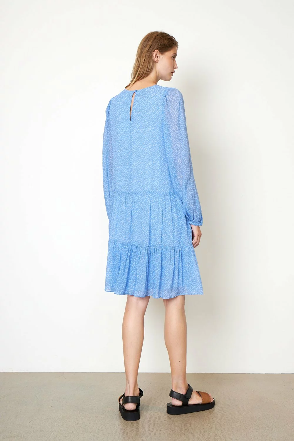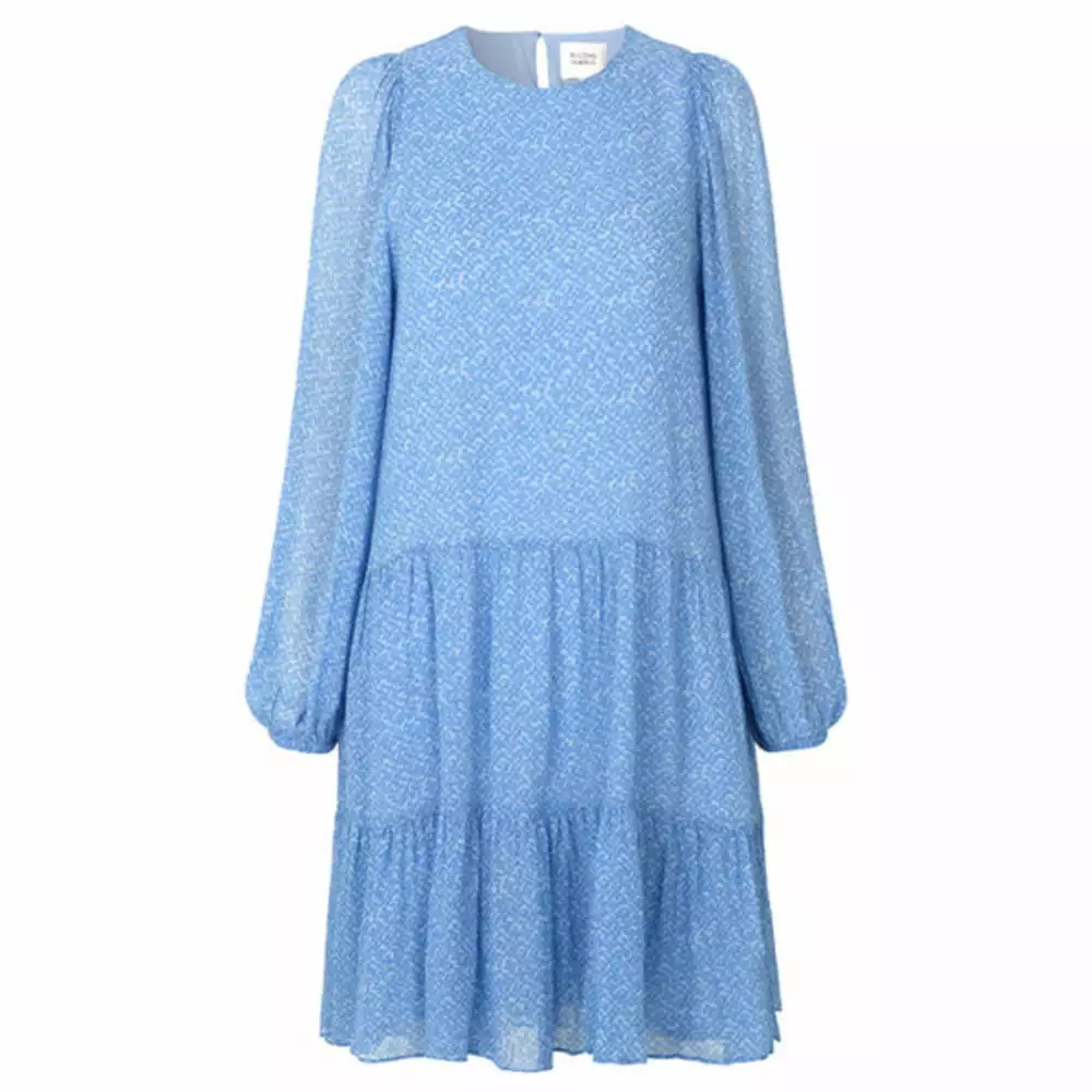 Mano Dress fra Second Female. En nydelig sommerkjole som er laget i lett og delikat viskosekvalitet. Kjolen har avrundet utringning, knappelukking bak og et lagdelt skjørt. Den har samlinger rundt skulderen for omfangsrike ermer og elastisk mansjett. Kjolen har midilengde. Match kjolen med et par sorte sandaler på sommeren.