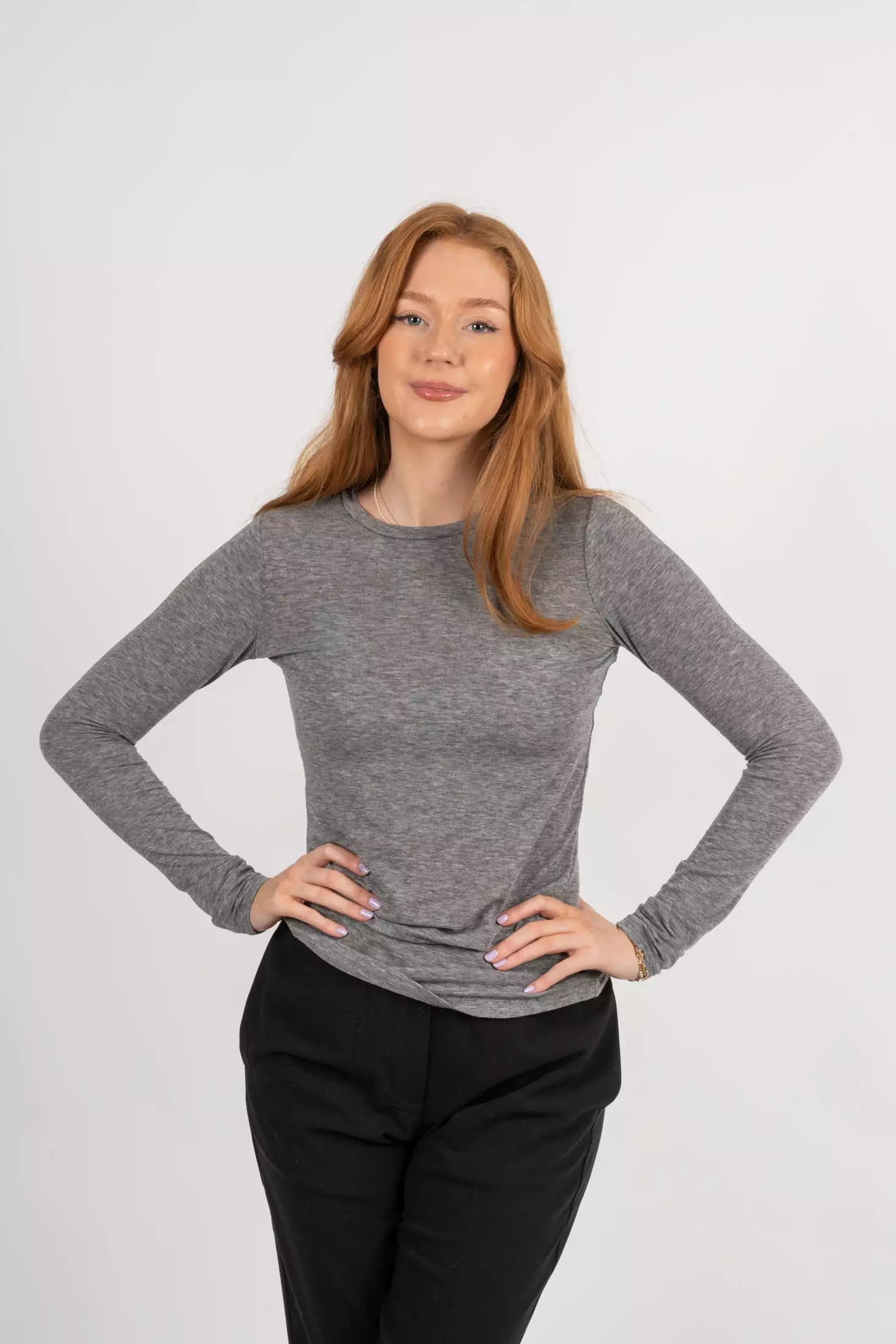Matima O-Neck Tee fra Second female. Langermet t-skjorte laget i en fin merino- og tencel-blanding. T-skjorten har avrundet hals og tettsittende passform. Fungerer perfekt som et baseplagg for layering denne sesongen.