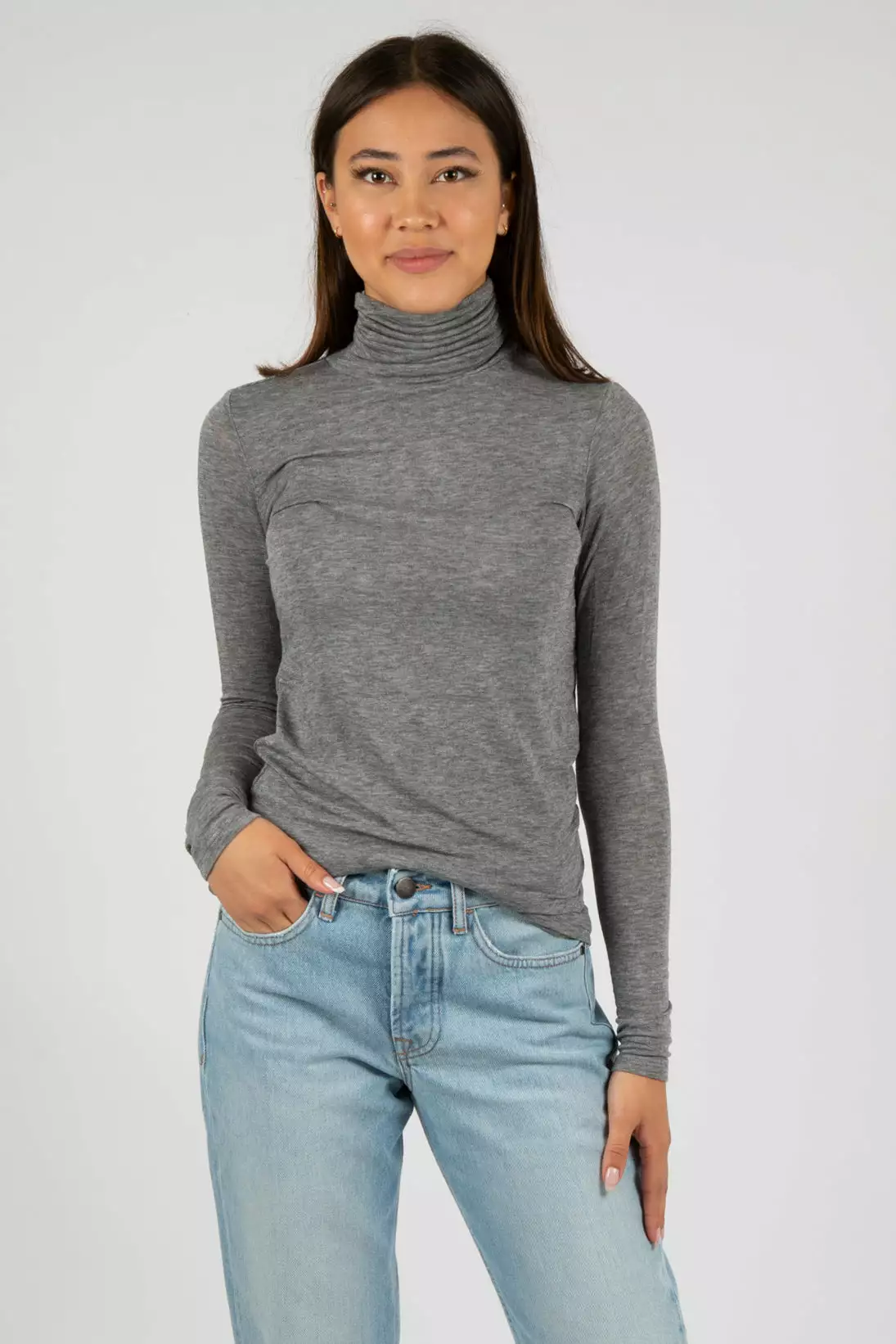 Matima T-Neck Tee fra Second Female. En klassisker du absolutt burde skaffe til garderoben din! Tynn pologenser med høy hals og tettsittende passform. Et nøkkelplagg som gir alle høstantrekkene dine den chice looken.