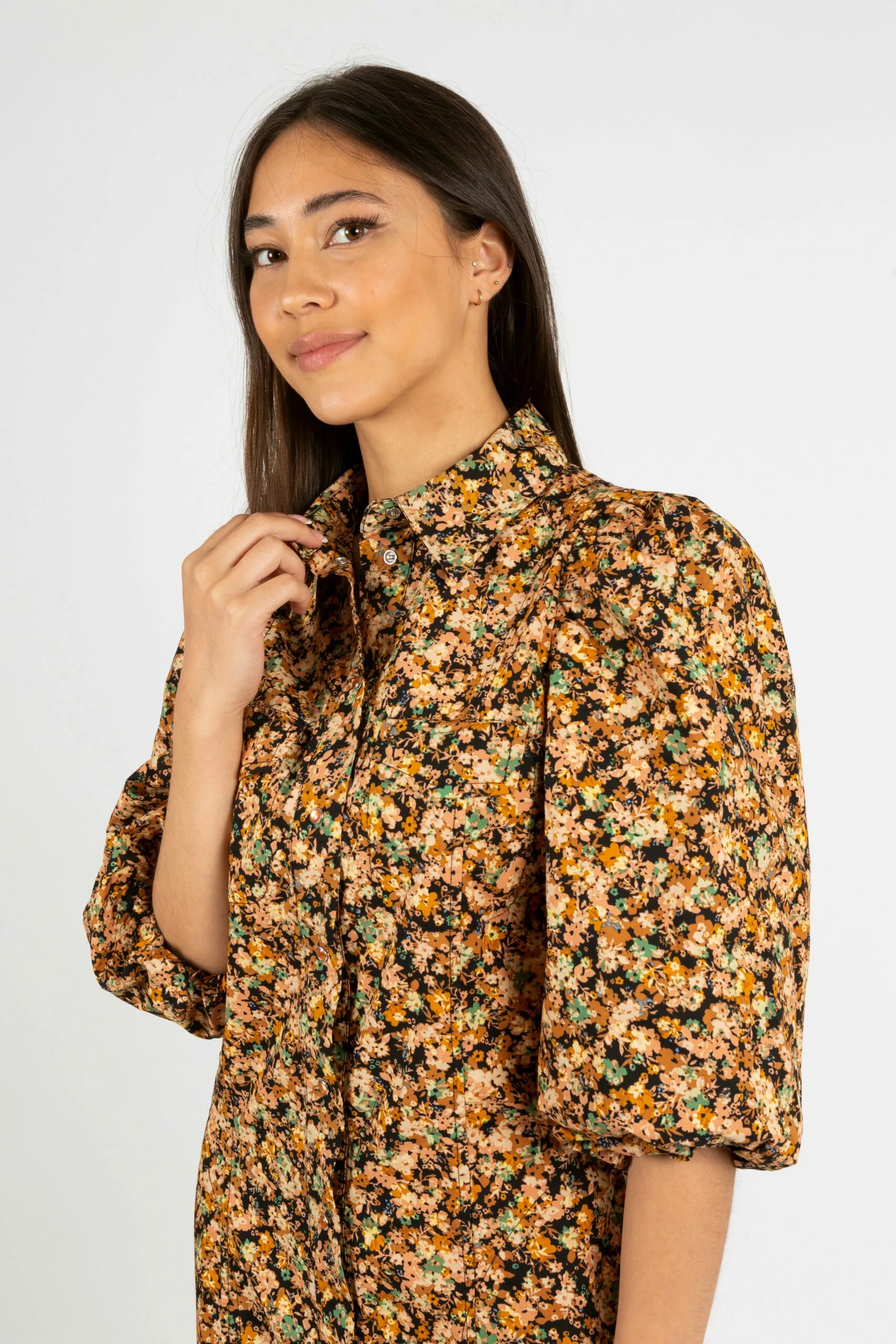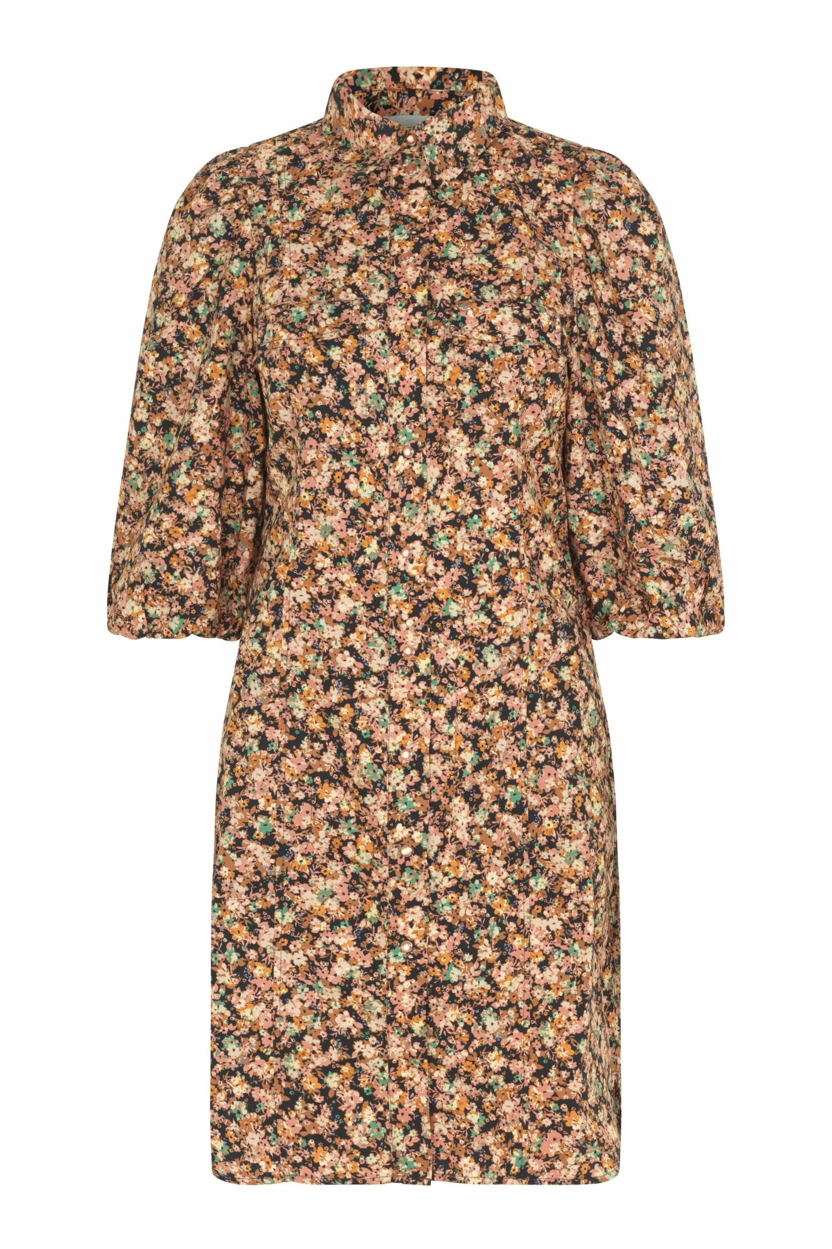 Mayda Dress fra Second Female. Fresh hverdagskjole med nydelig print. Kjolen kommer med regular fit, høy hals og halvlange vide ermer. Match kjolen med et par høye sorte boots for en gjennomført look.