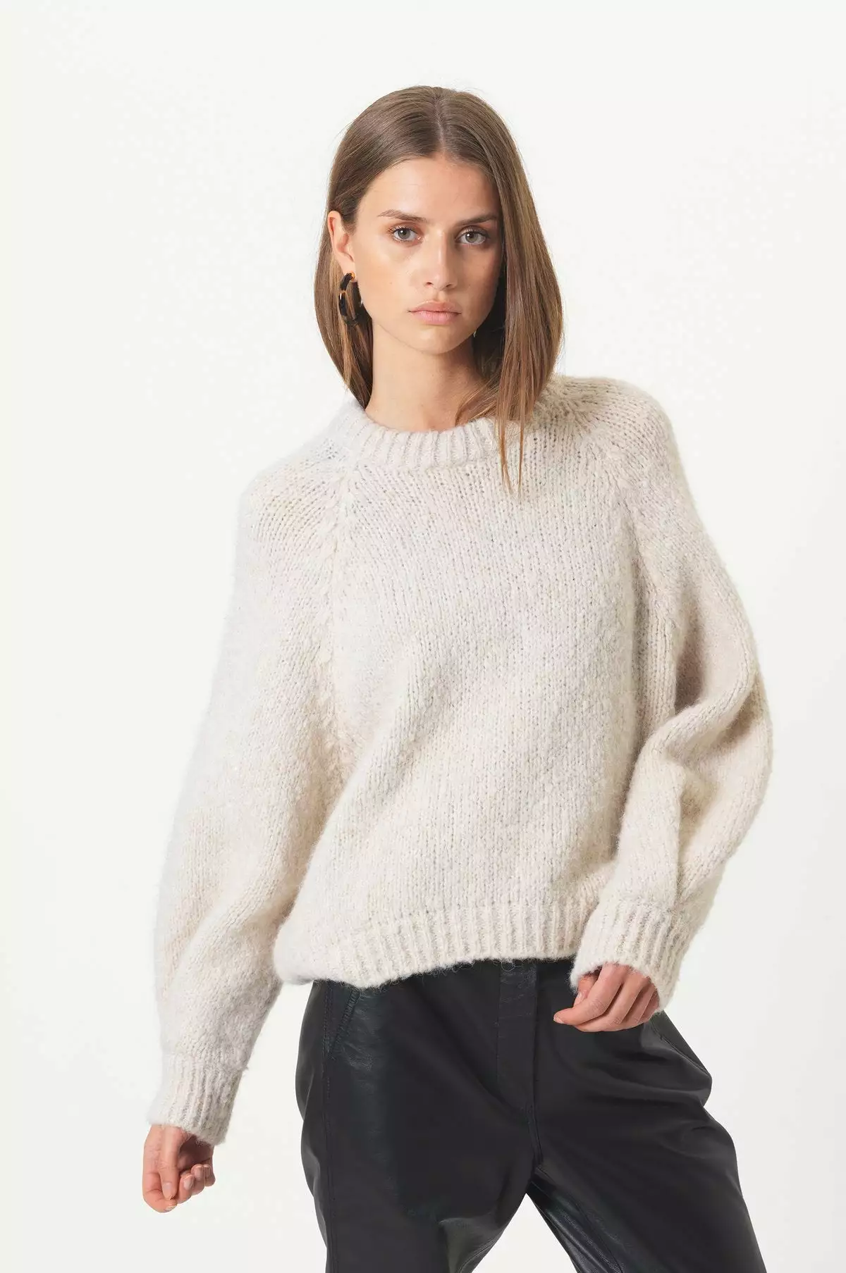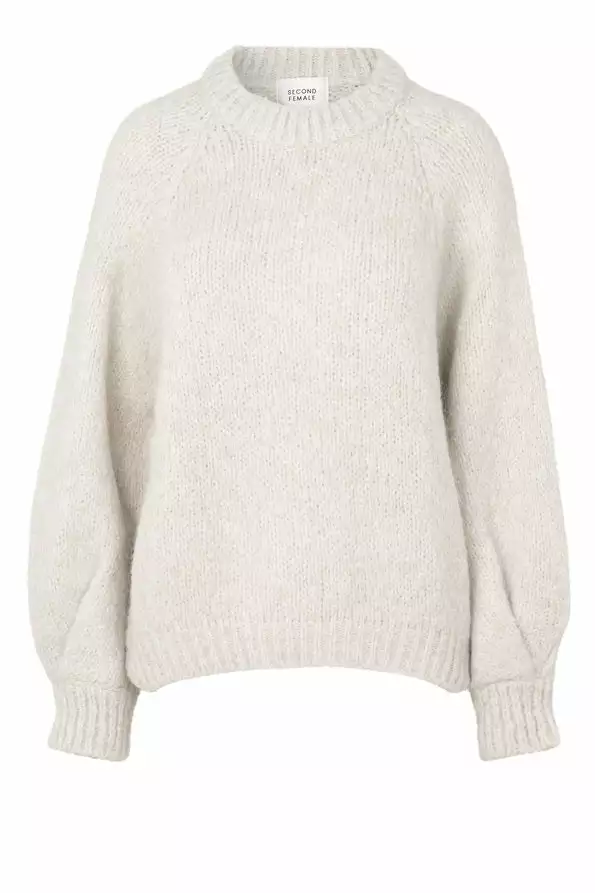 Milffa Knit O-Neck er en myk og deilig strikkegenser med rund hals og voluminøse ermer. Noe lengre bak en foran.
