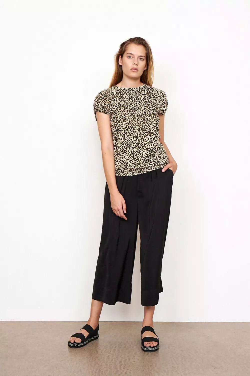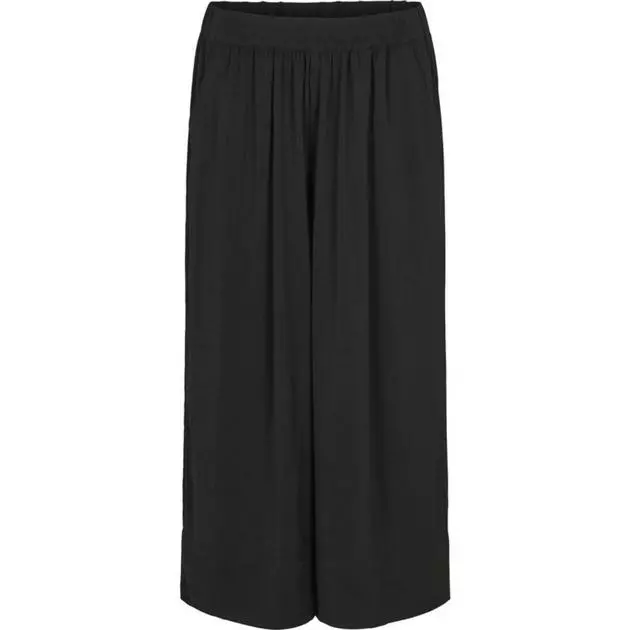 Minga New Trousers fra Second Female. Enkle og klassiske bukser i en luksuriøs, 100% resirkulert polyester kvalitet. Buksen har løs passform, elastisk midje, sidelommer og bred nederkant. Lengde til midt på leggene. Match den med en oversized hvit skjorte for en chic look.