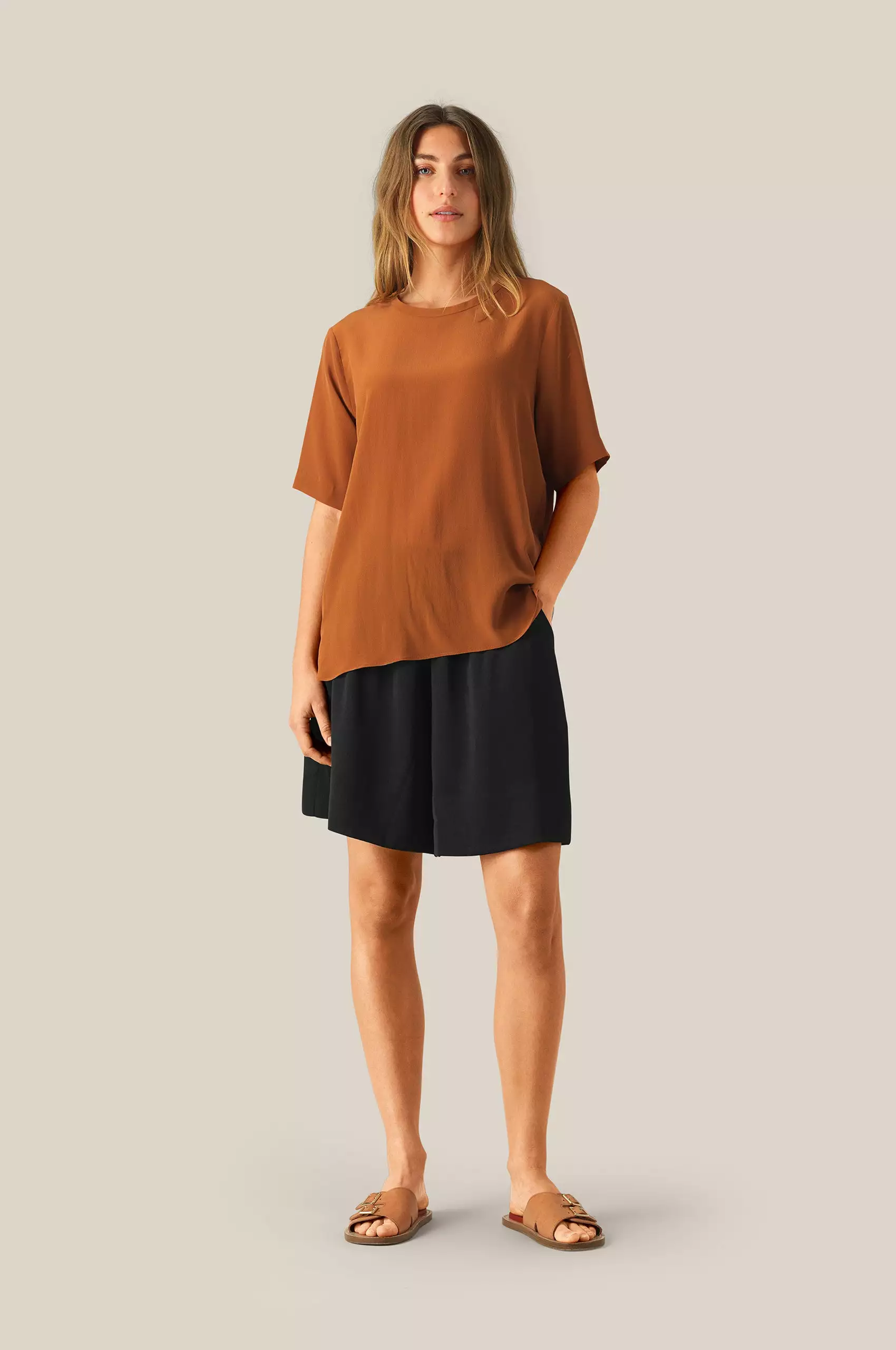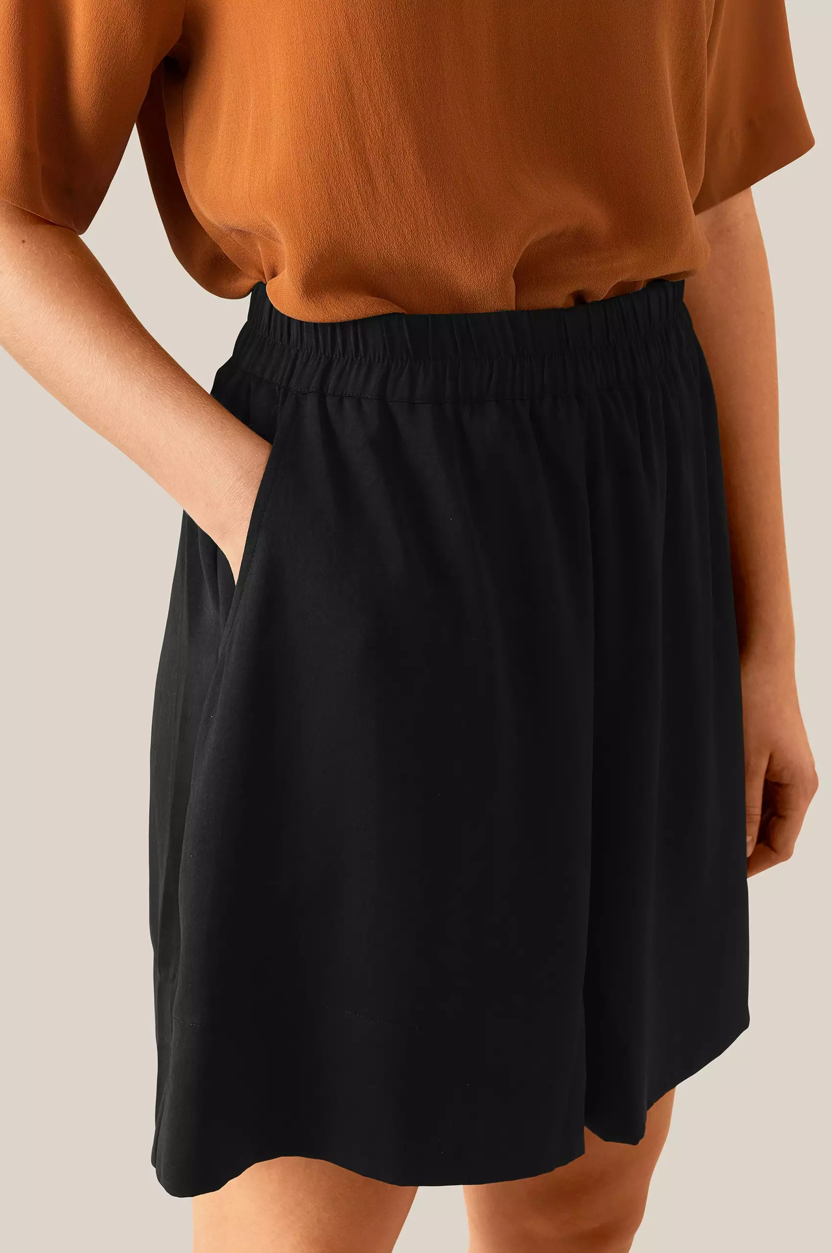 Minga Shorts fra Second Female. Gå for en luksuriøs og elegant sommerlook med Minga Shorts denne sommeren. Shortsen har elastisk midje, sidelommer og en vid passform som faller pent. Superfin å bruke med en linskjorte eller din favorittbluse.