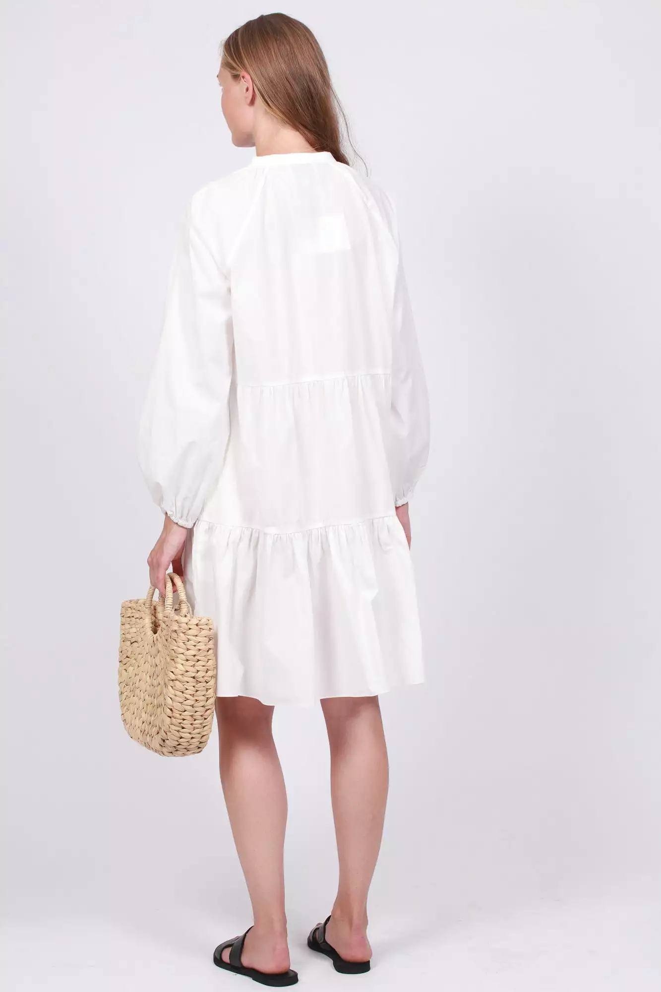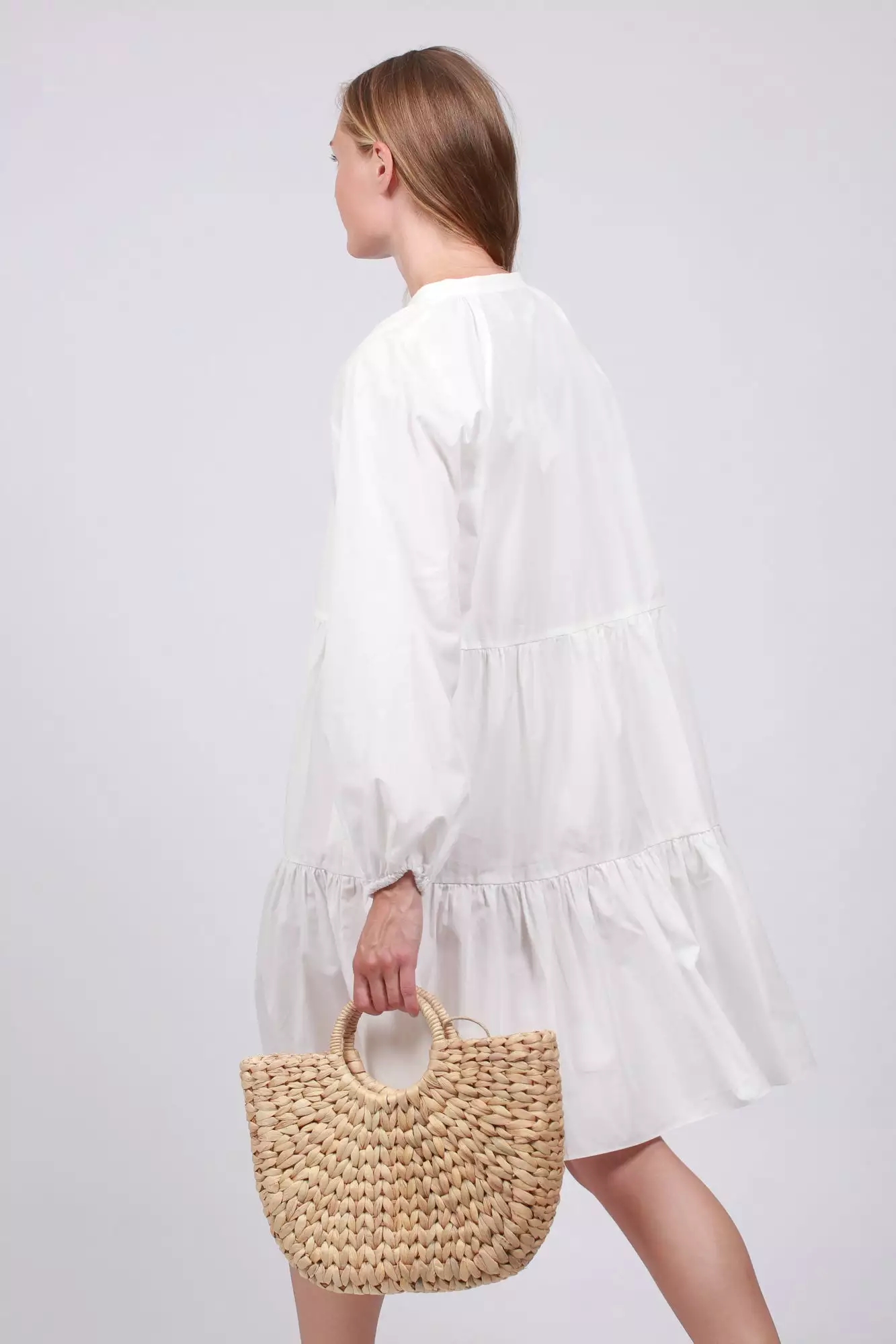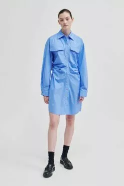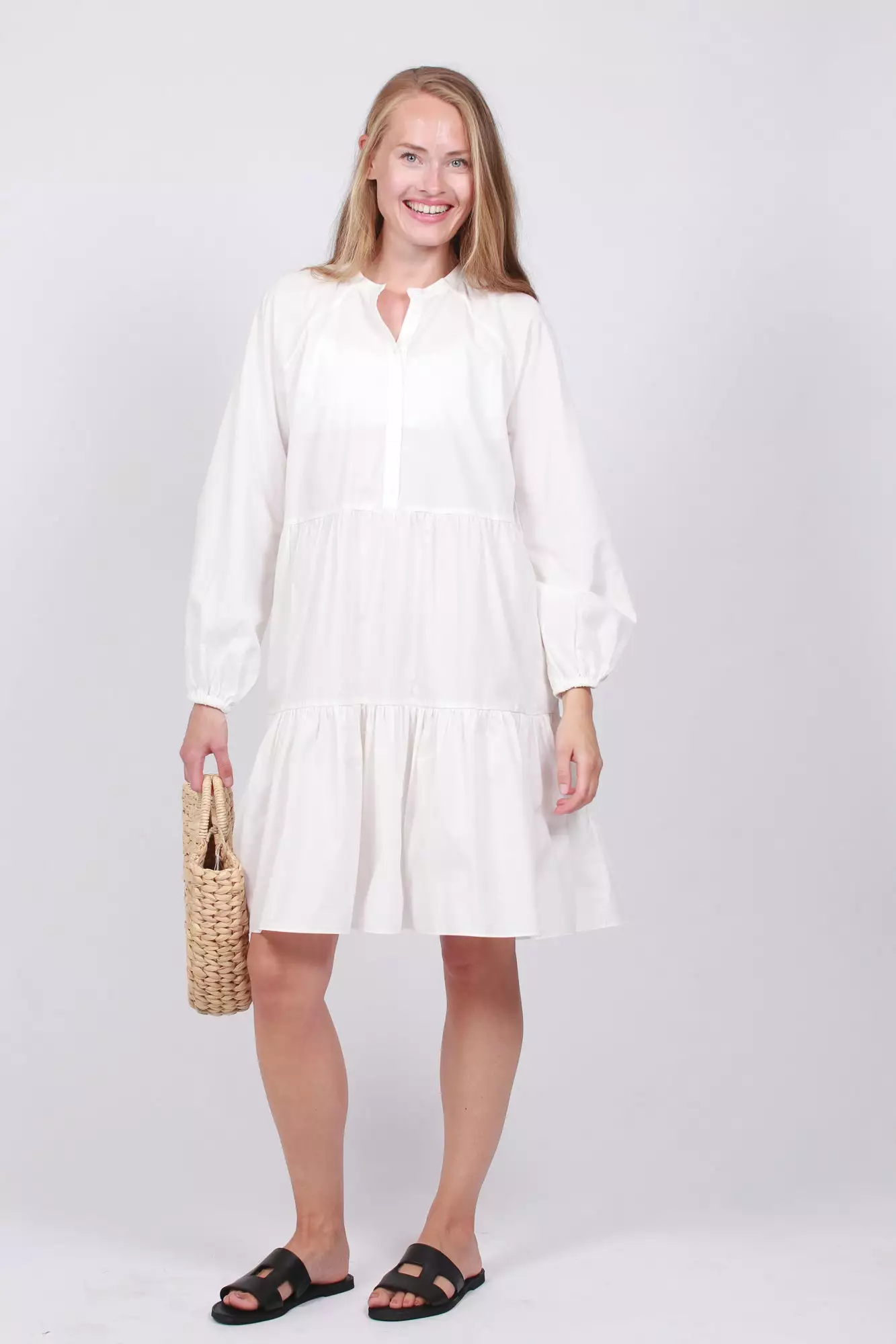 Miracle Dress fra Second Female. Nydelig sommerkjole laget i et lett crispy bomullsstoff. Kjolen er løs i passformen og har knapper øverst på brystet. Lange ermer med strikk nederst.