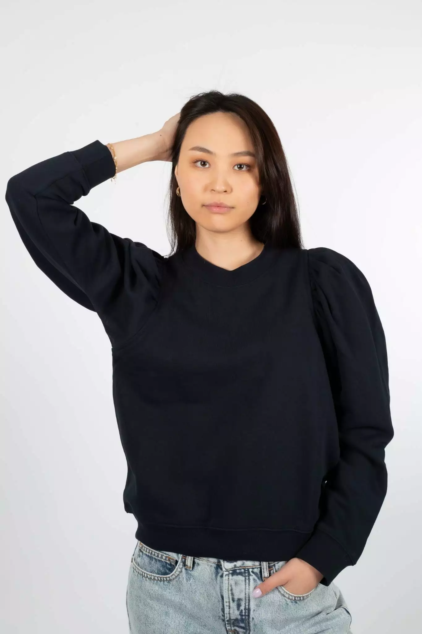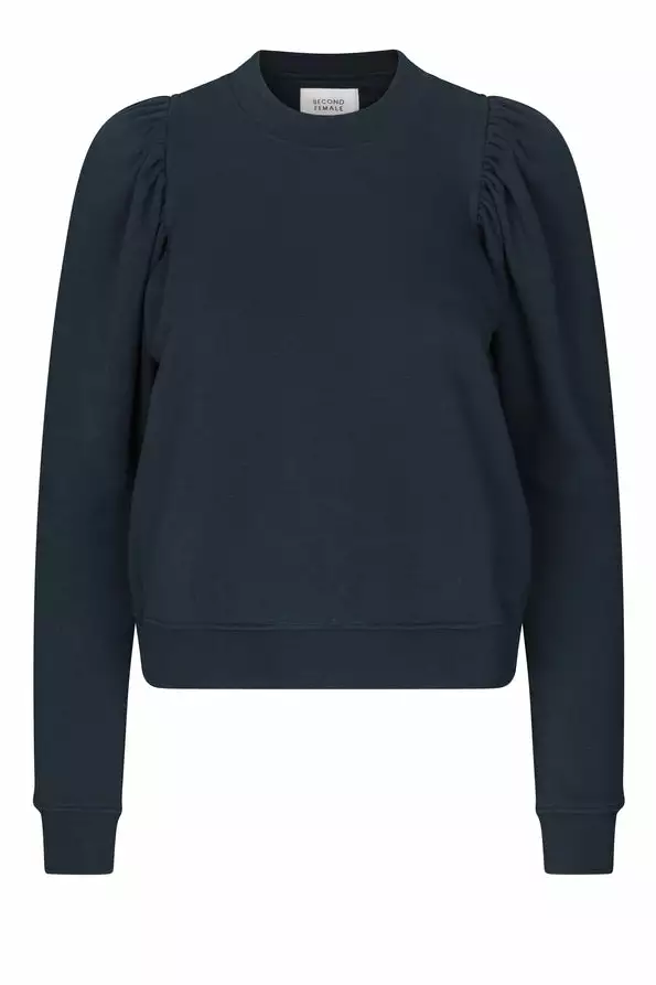 Oriana Sweat fra Second Female. En deilig og myk collegegenser med rund hals og vide ermer. Perfekt hverdagsgenser som du kan tusle rundt i hjemme!Â