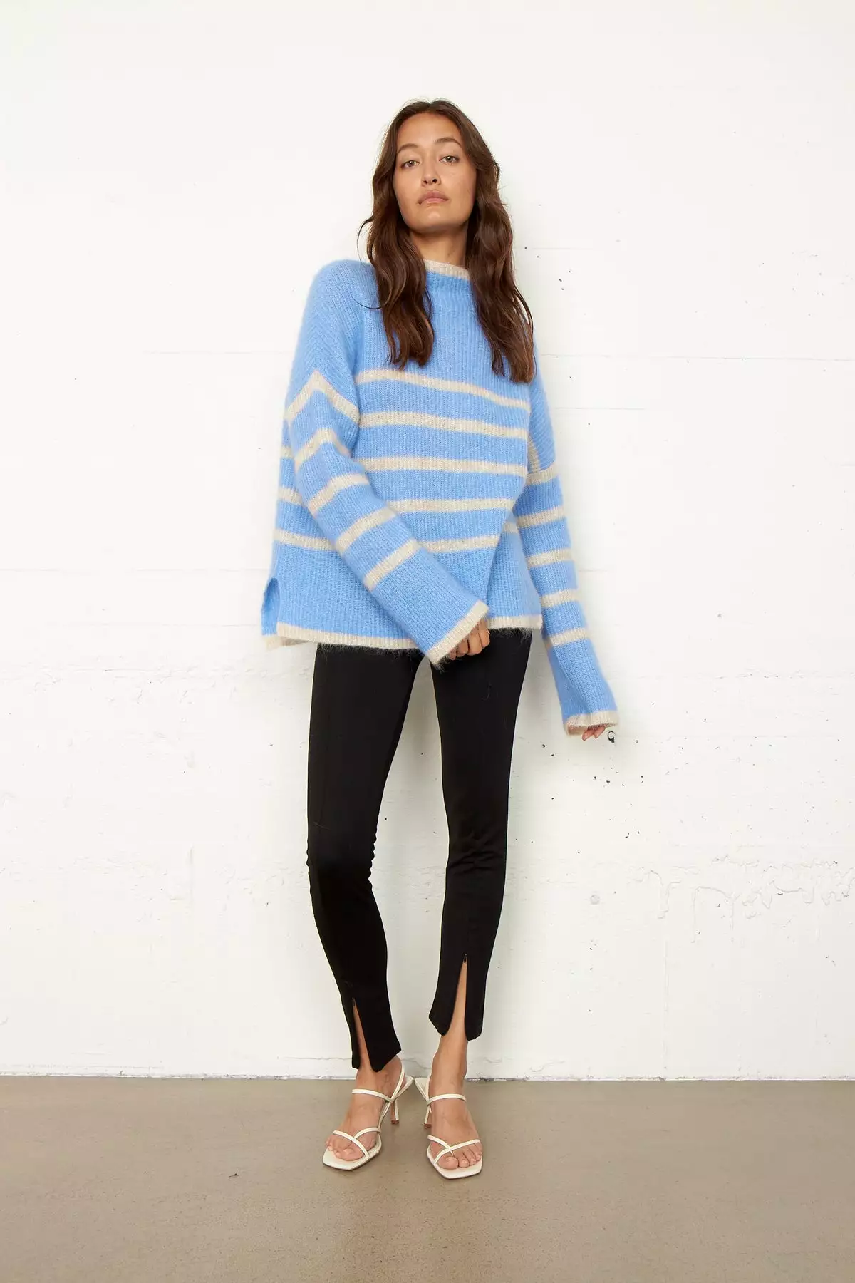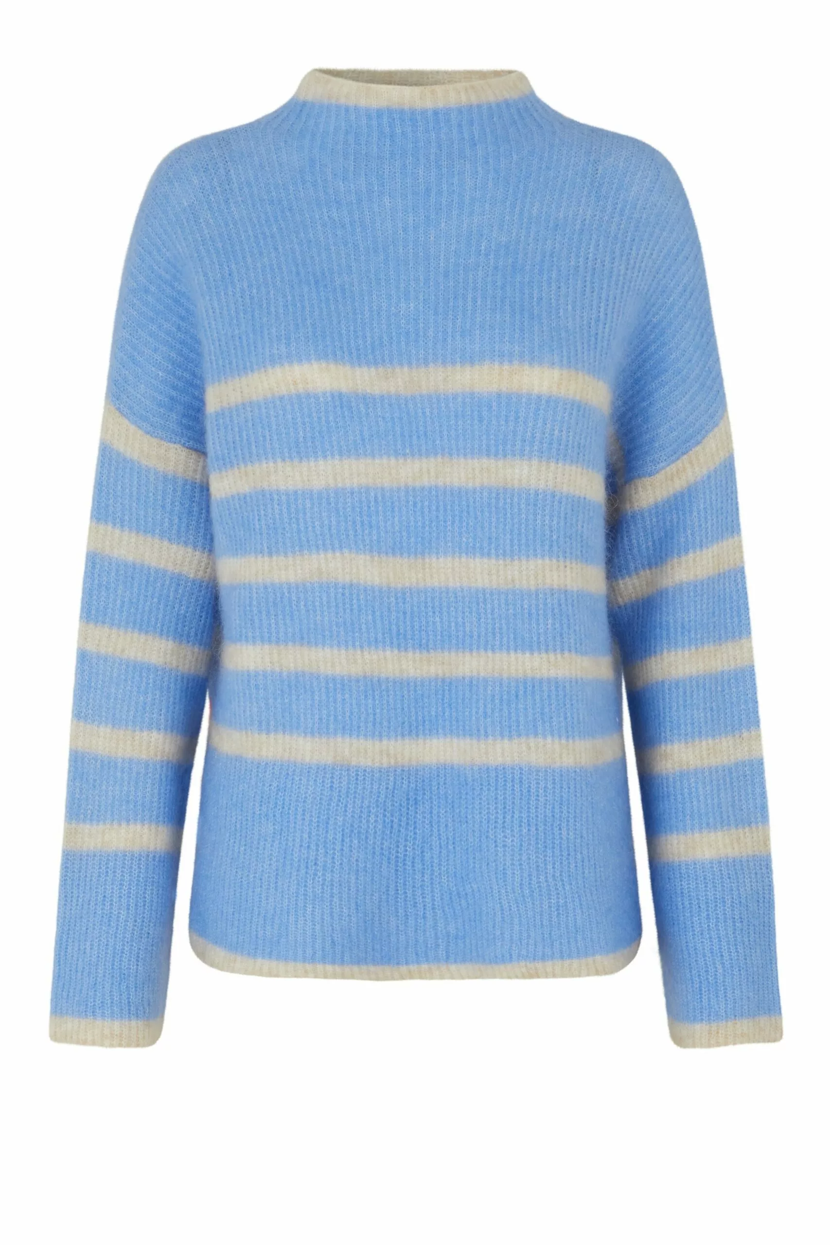 Ovalis Knit T-Neck fra Second Female. Favoritten vår er tilbake i en ny farge! Deilig strikkegenser med halvhøy hals. Ovalis har en løsere passform og splitt i sidene, og klassiske striper som gjør den til en favoritt sesong etter sesong!