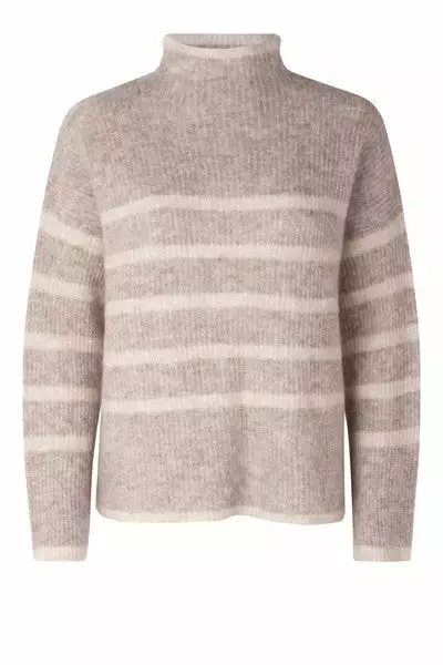 Ovalis Knit T-Neck fra Second Female. Deilig strikkegenser med halvhøy hals. Ovalis Knit T-Neck har en løsere passform og splitt i sidene, og klassiske striper som gjør den til en favoritt sesong etter sesong!