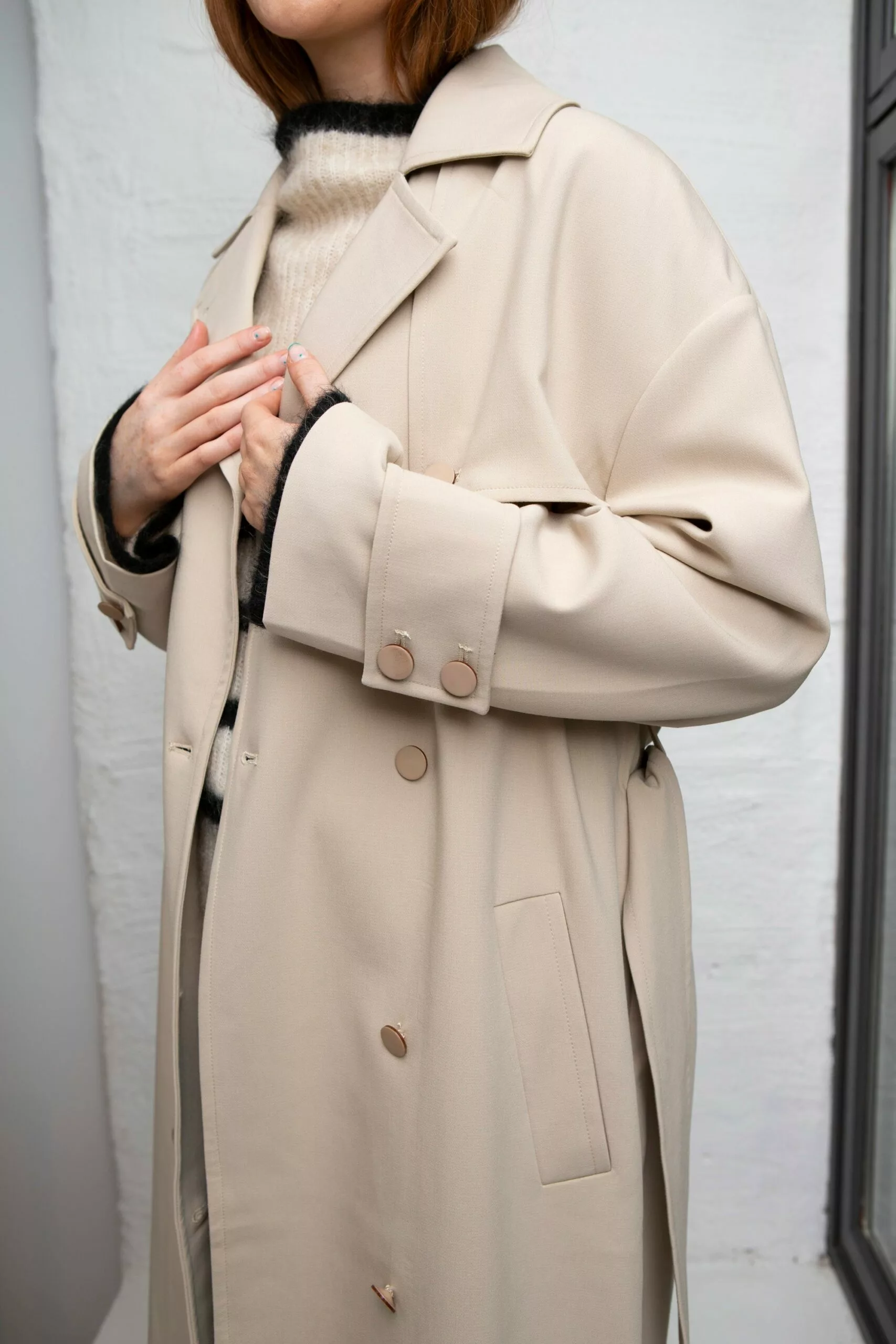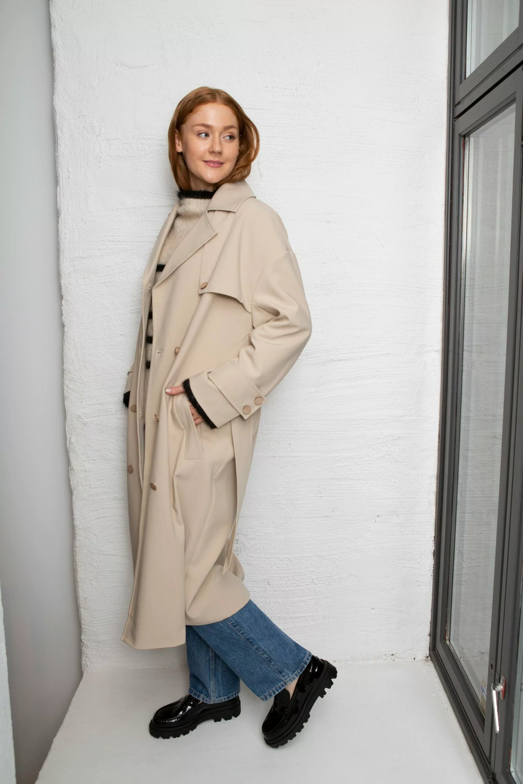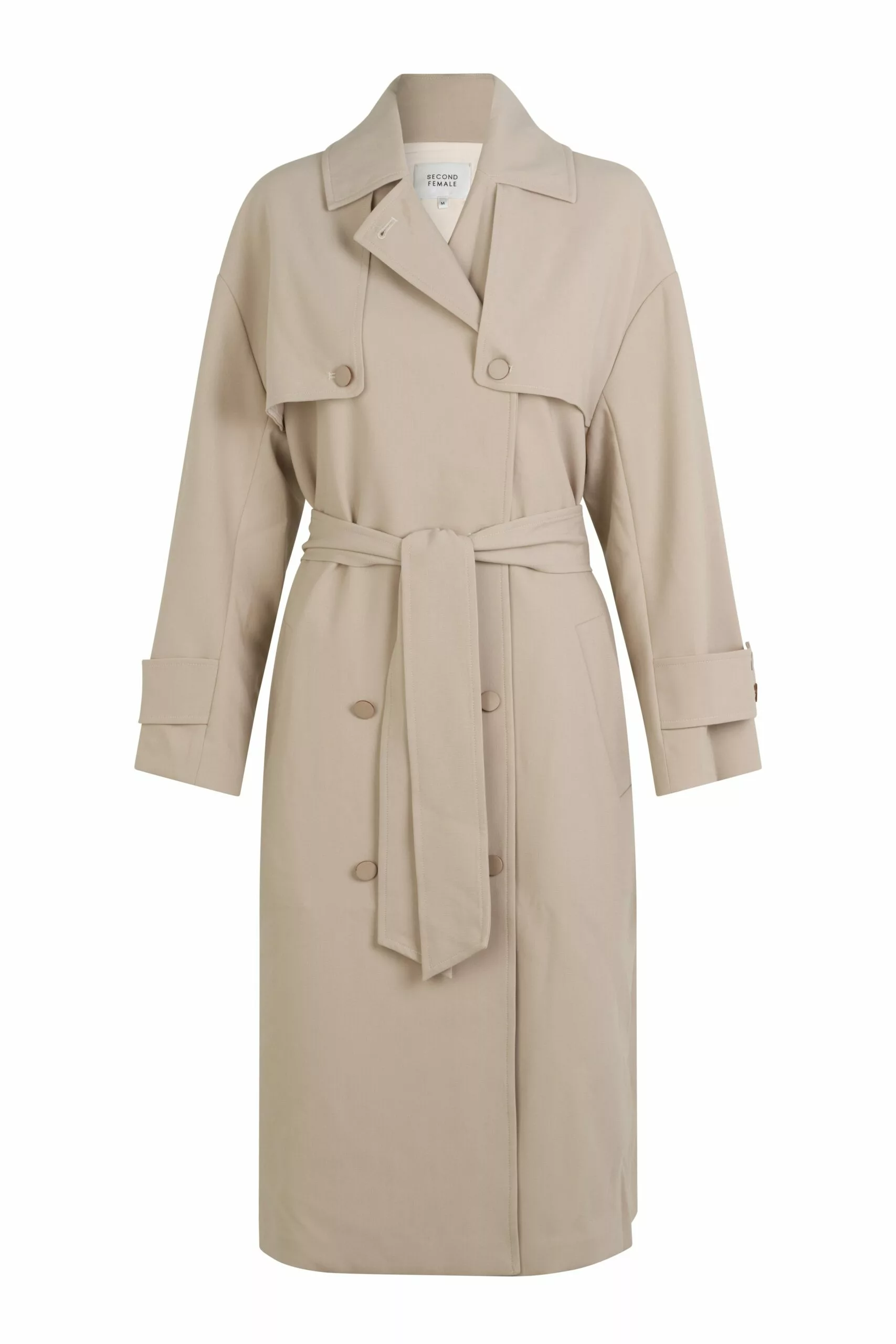 Silvia Classic Trenchcoat fra Second Female. Den klassiske trenchcoaten er et must i enhver garderobe! Kåpen har belte i midjen og dobbeltspent lukking foran. På ermene er det dekorative stropper ved håndleddet, lommer foran og splitt på baksiden. Bruk over et par jeans og en stripete genser for en Parisisk look.