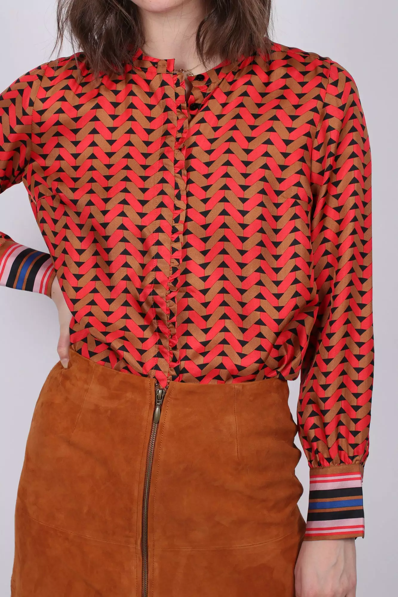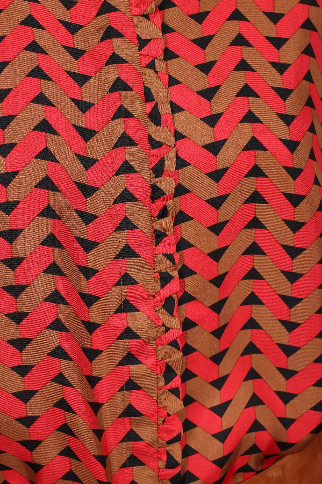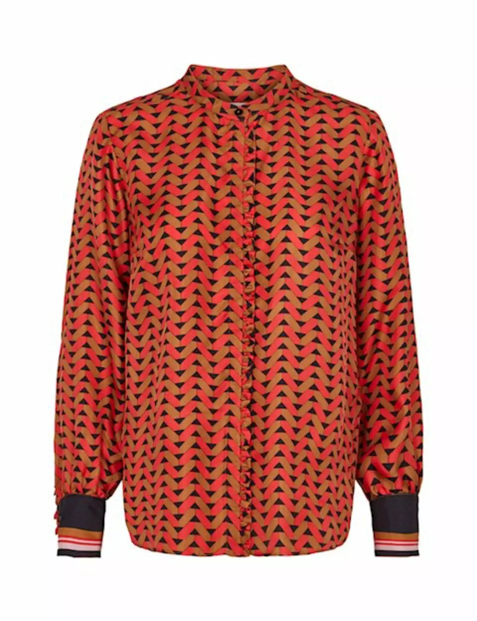 Fin mønstret topp som sitter løst på kroppen. Toppen har volanger ved knappesteningen. Materiale: 100% Silke