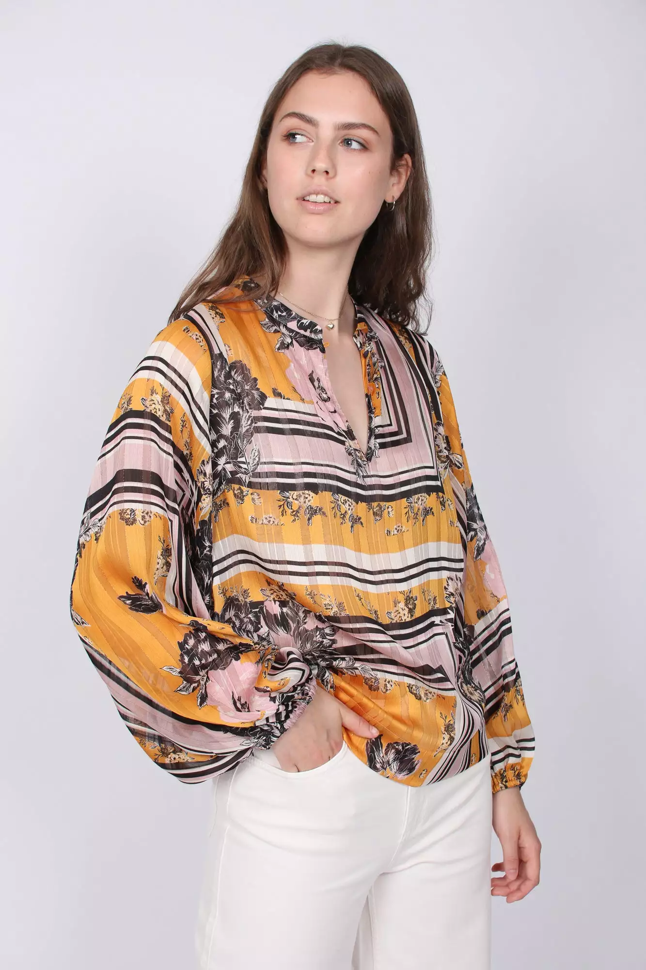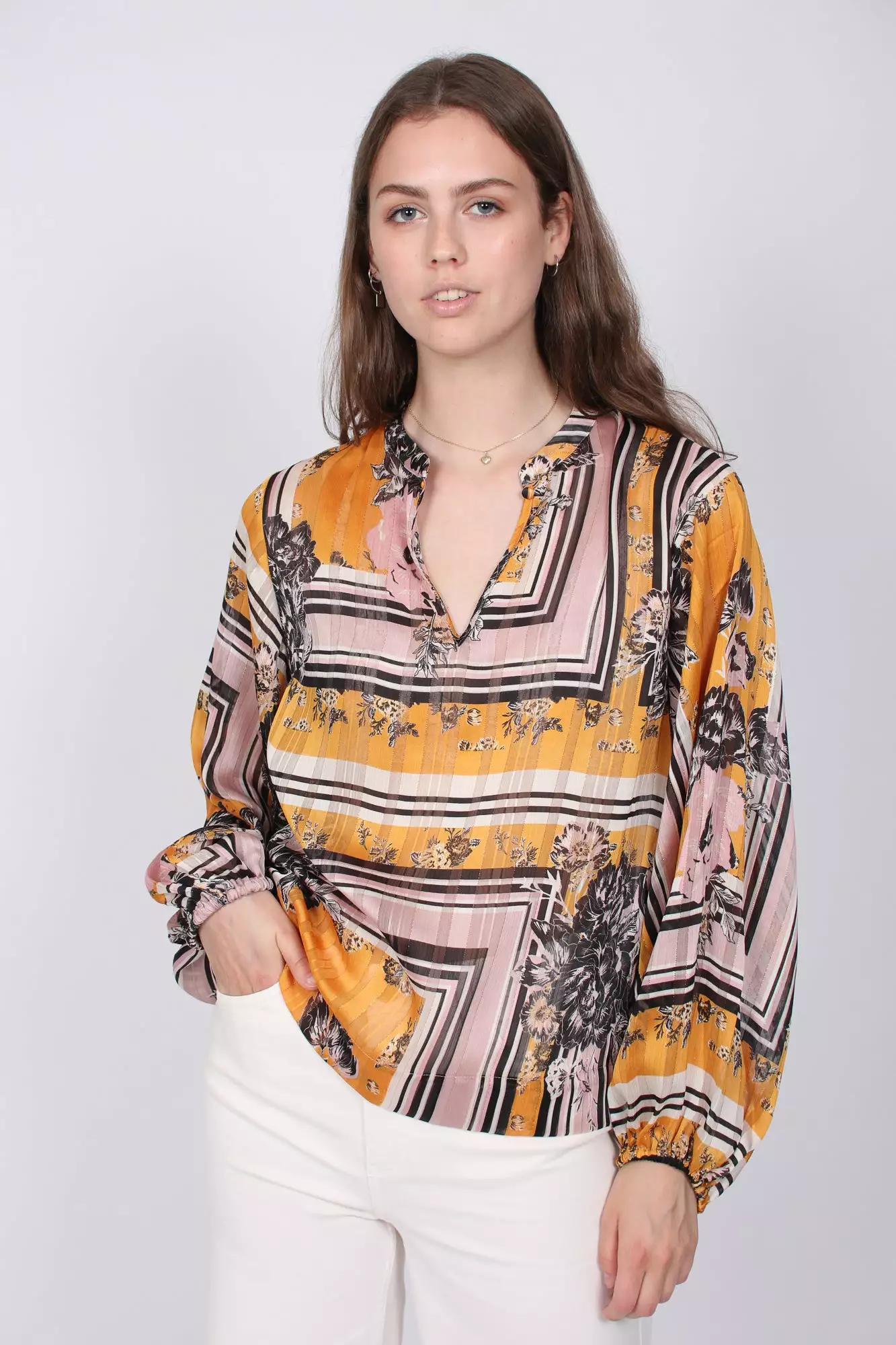 Fin pyntet bluse fra Second Female. Perfekt til fine bukser på fest. Blusen har vide ermer og er behagelig å ha på seg.