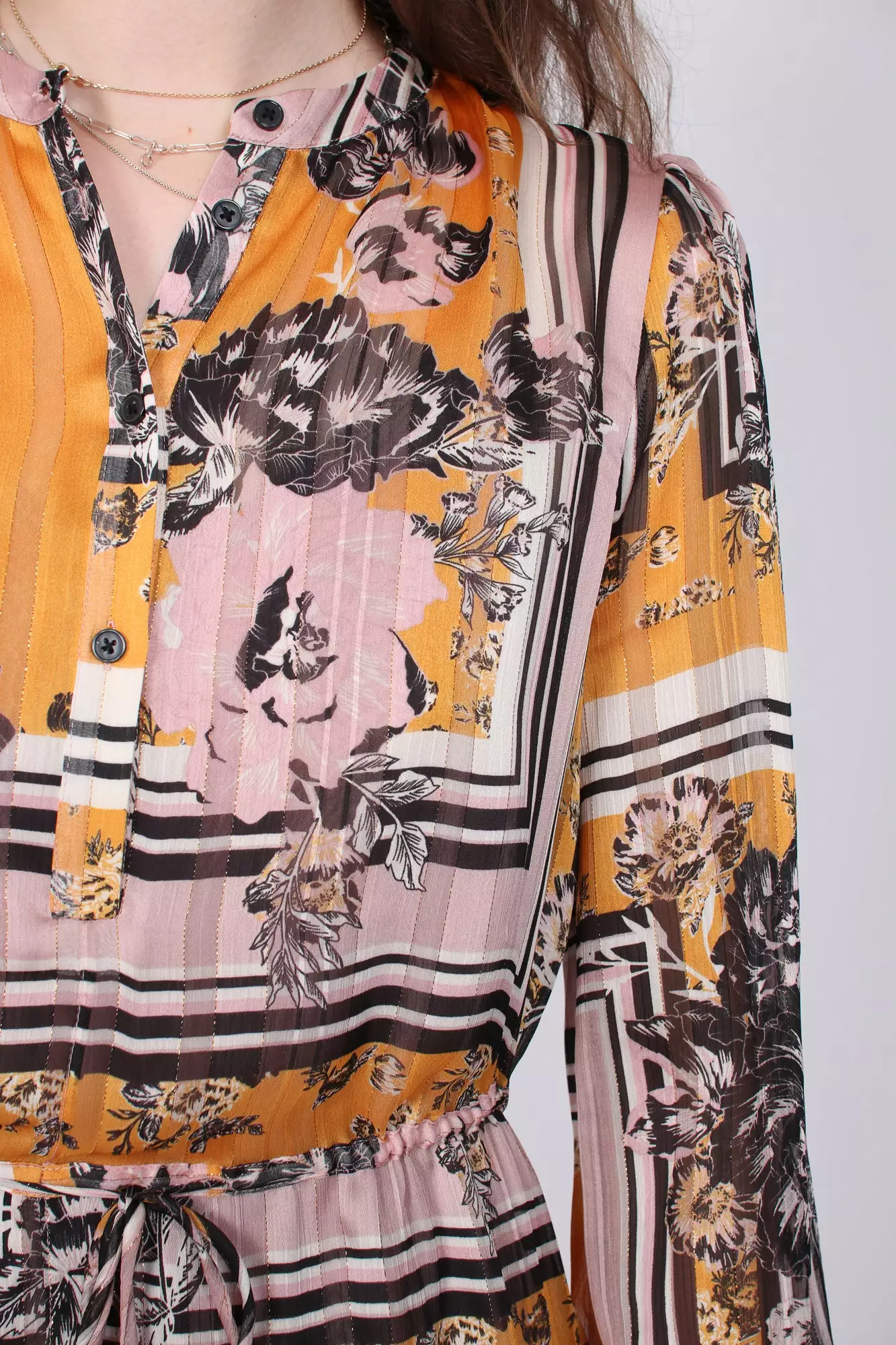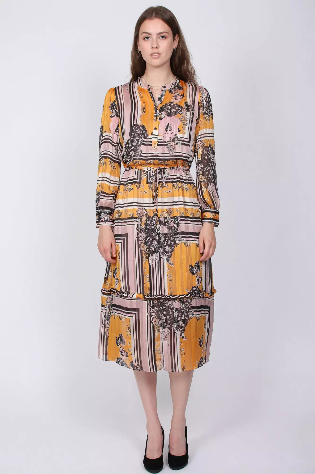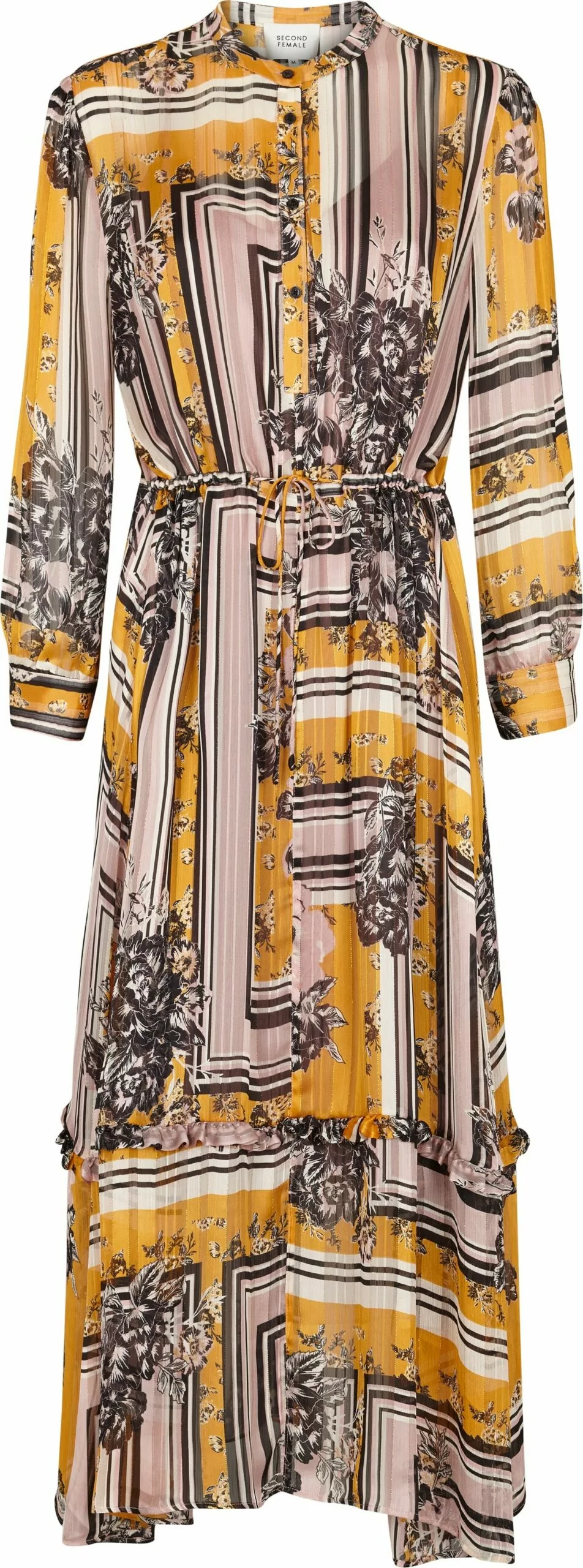 Flott lang kjole fra Second female. Kjolen har knyting i livet og vide ermer.