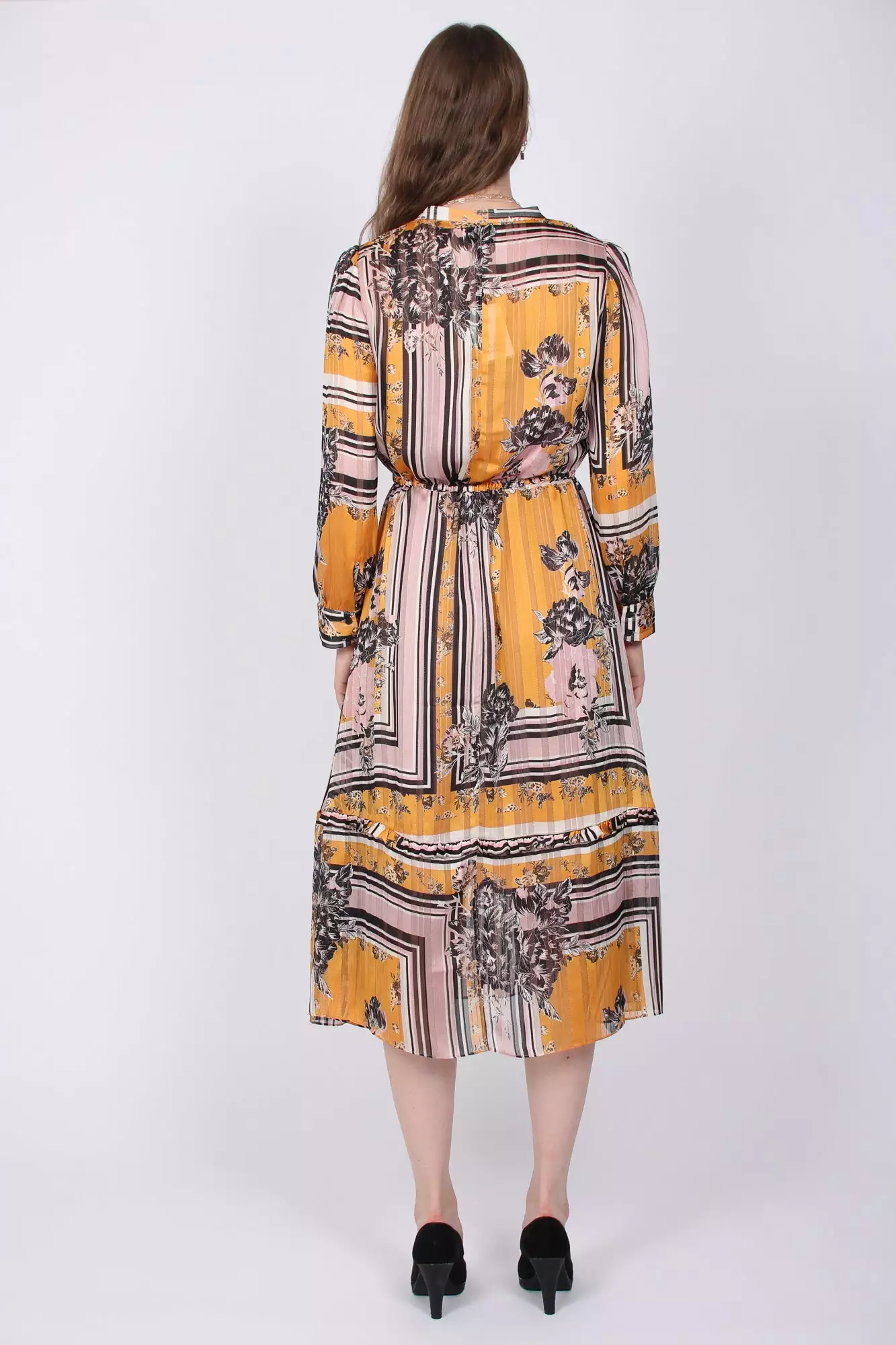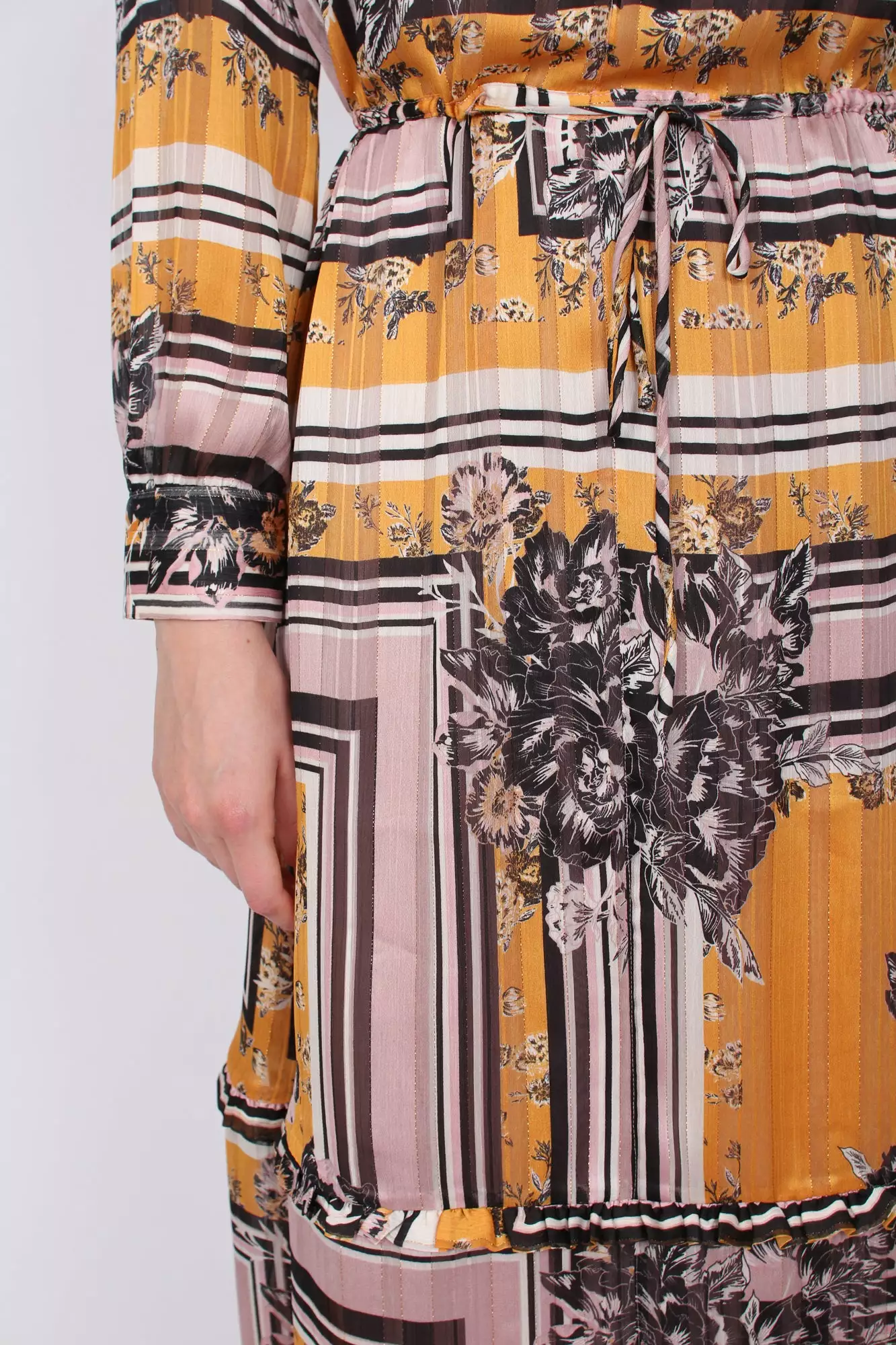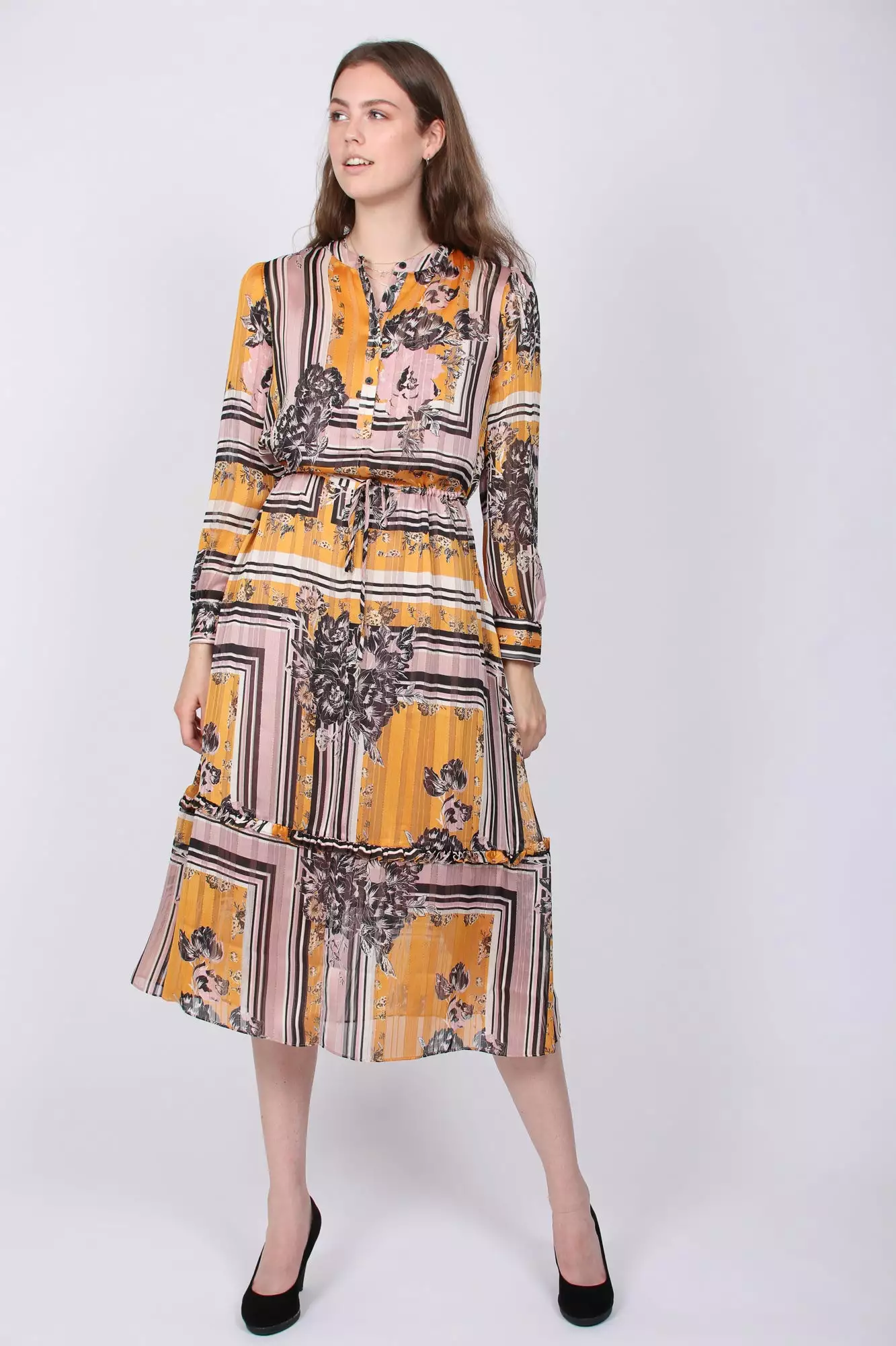 Flott lang kjole fra Second female. Kjolen har knyting i livet og vide ermer.
